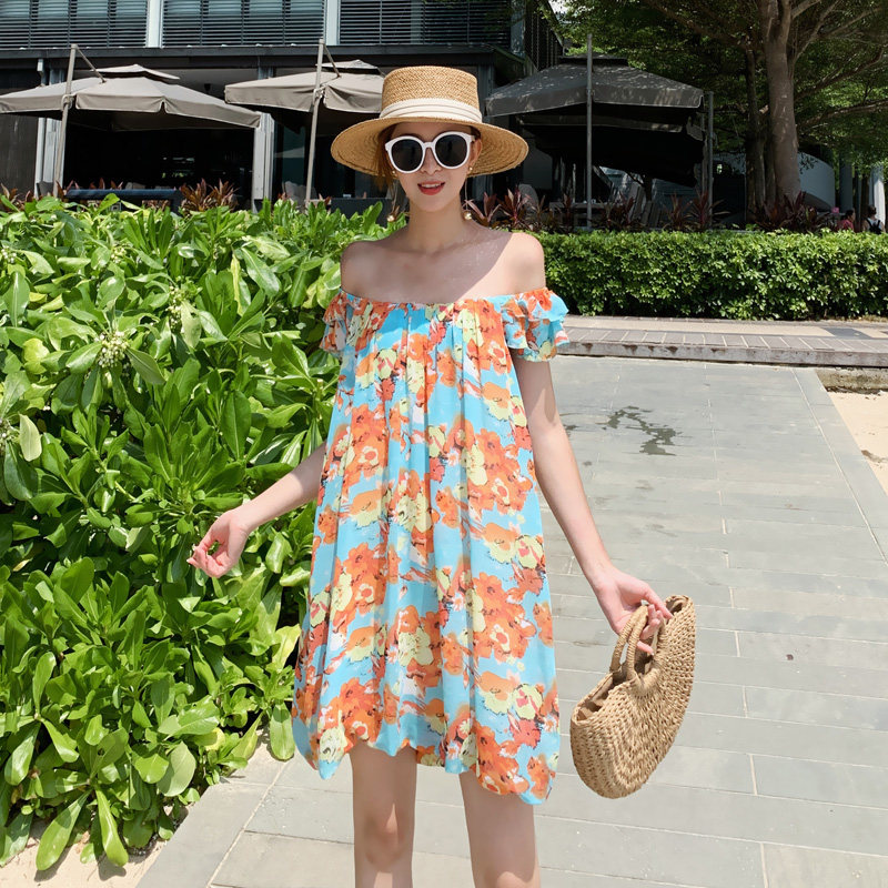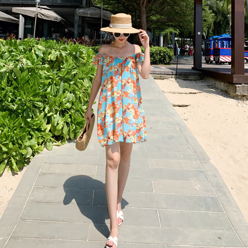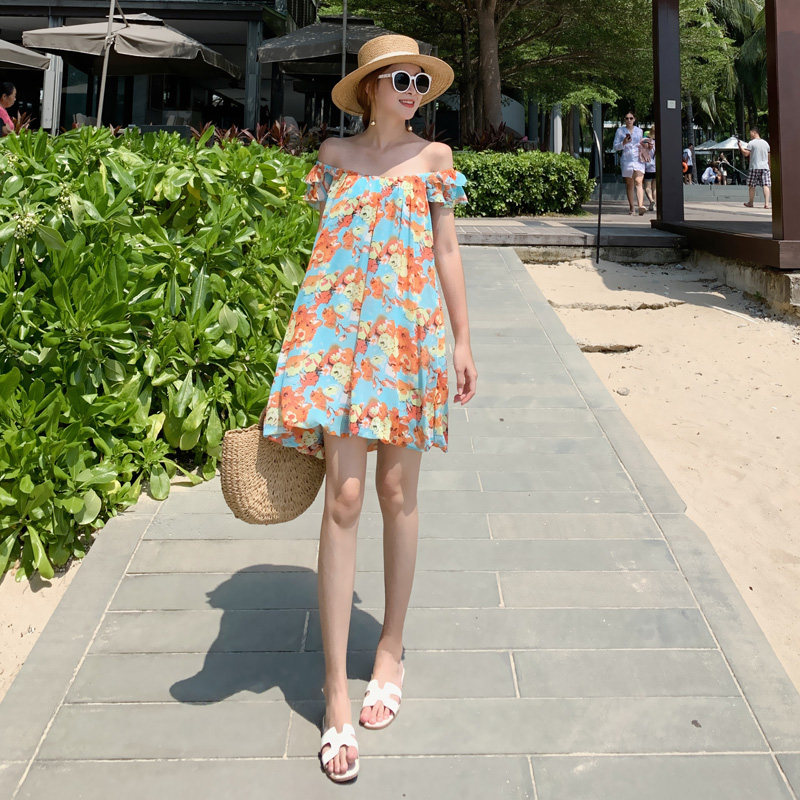连衣裙夏季新款女短款性感高雅碎花显瘦海南三亚海边度假沙滩裙子