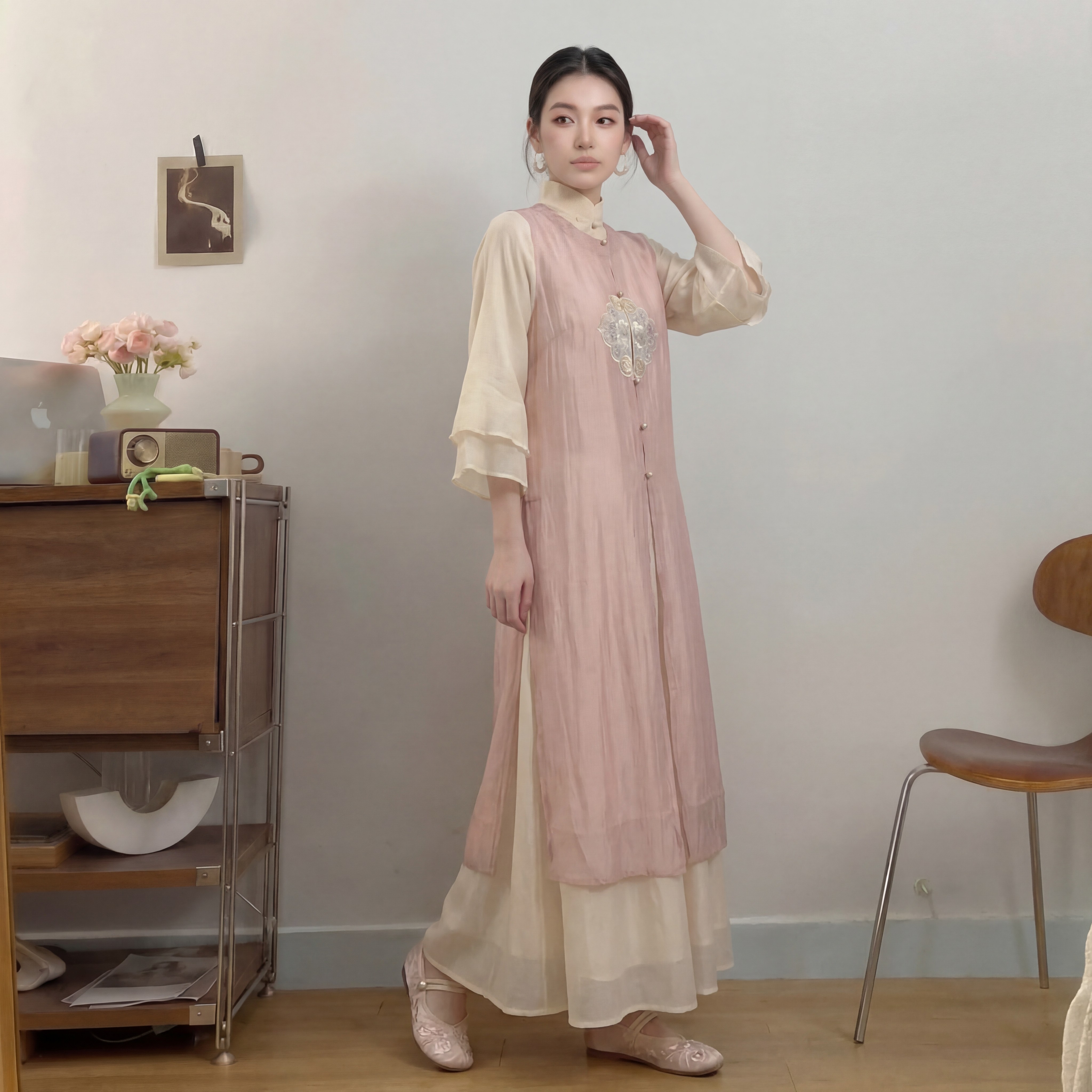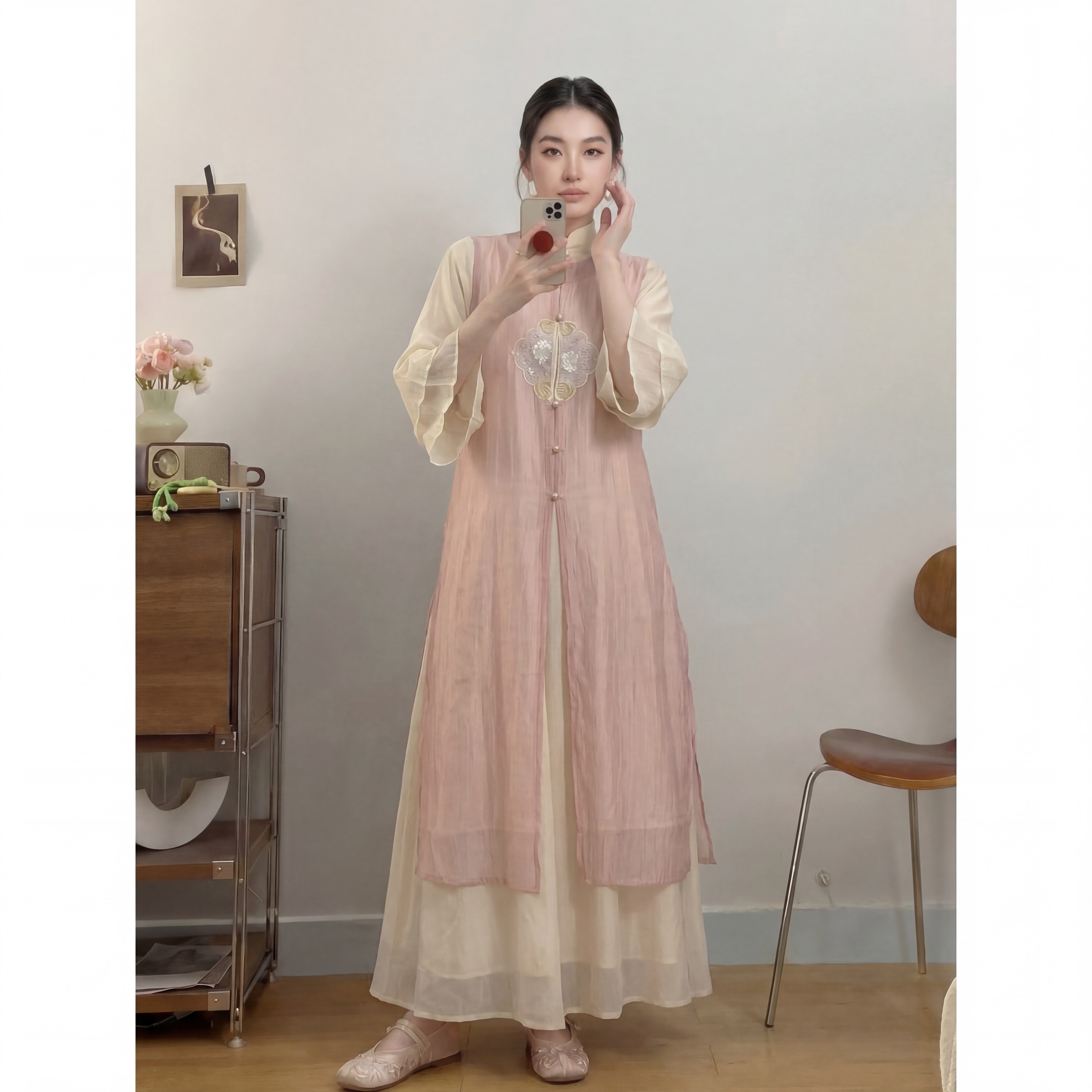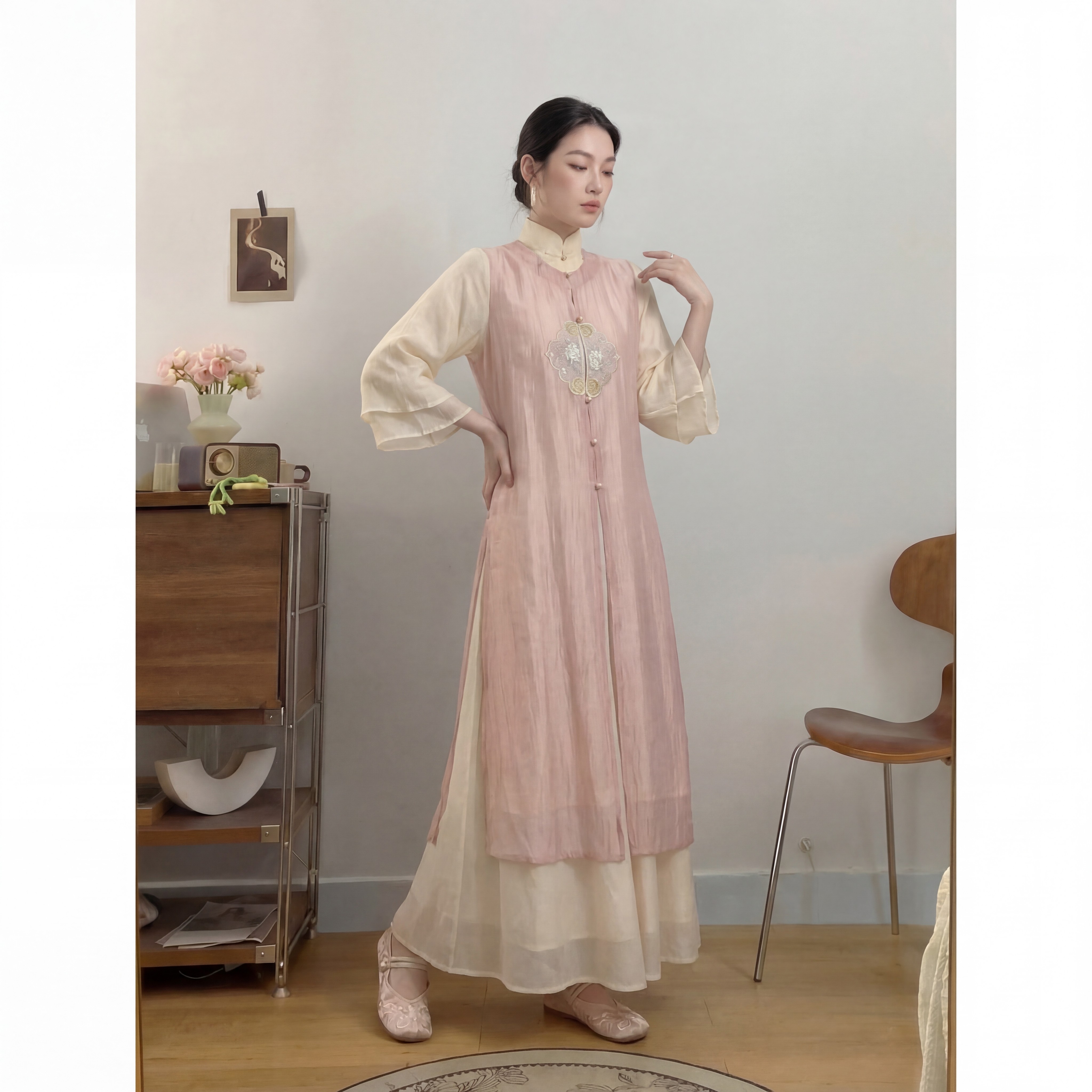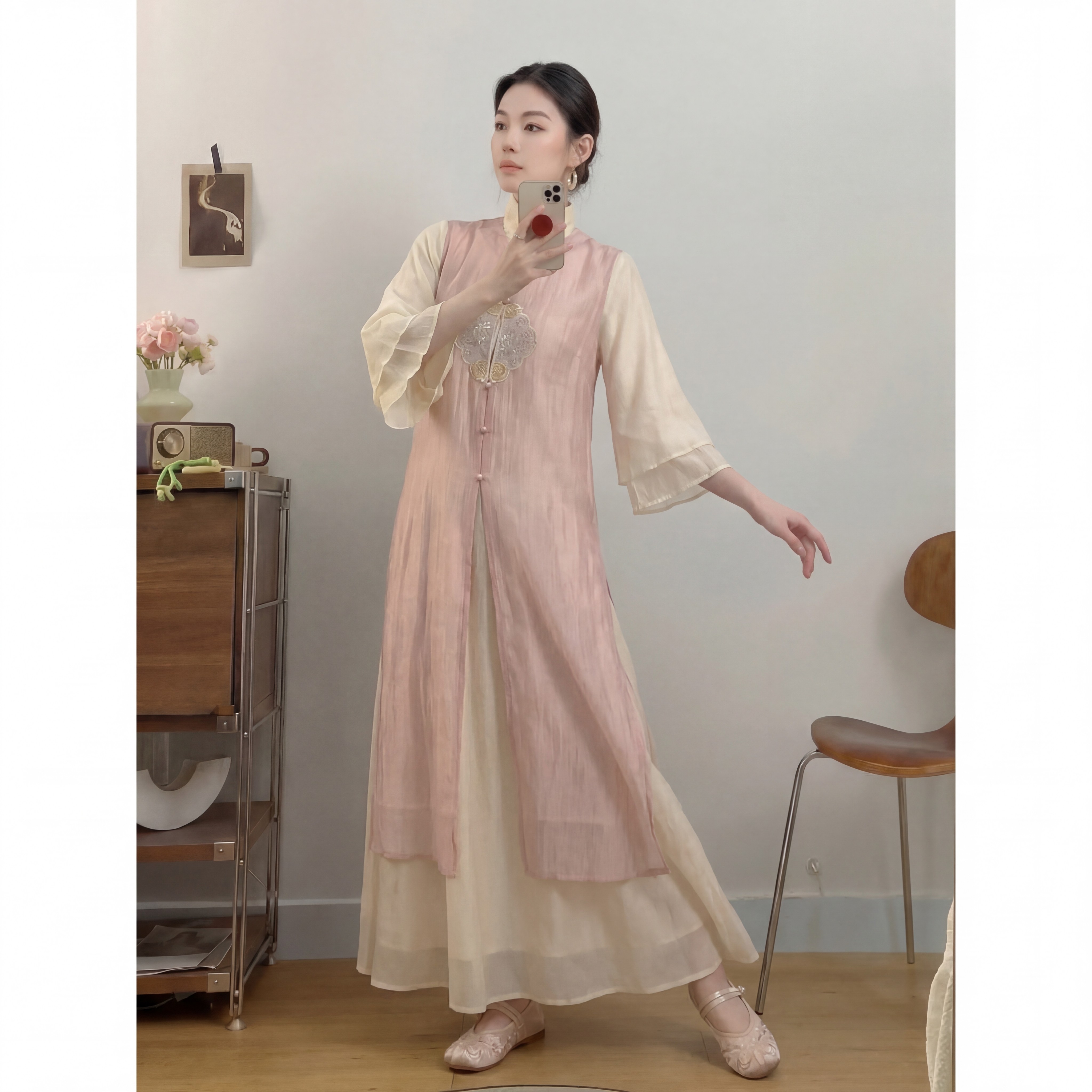 文艺复古新中式简约长款马甲百搭连衣裙两件套装2026年春夏季新款