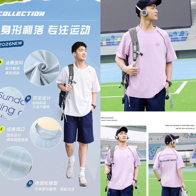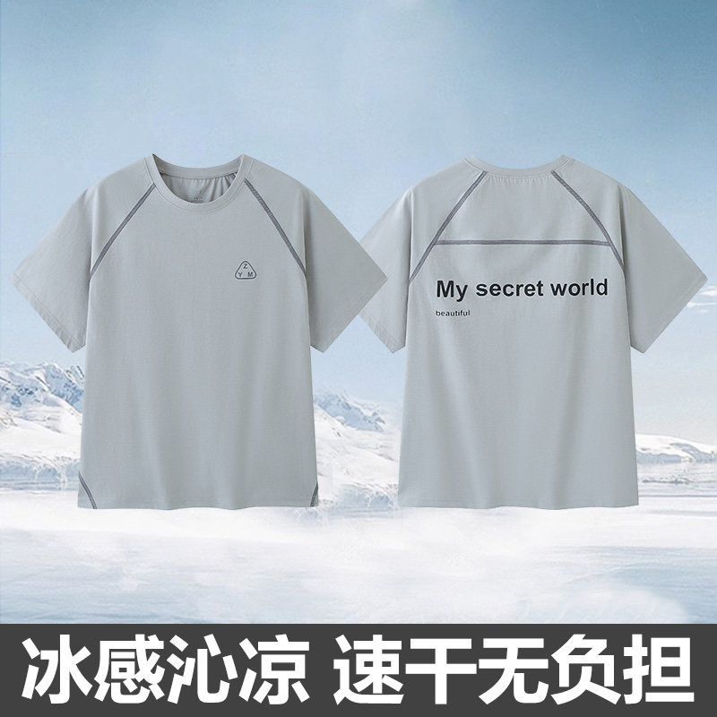 青少年透气运动T恤男女生儿童冰丝夏季款男童短袖男孩休闲速干衣9