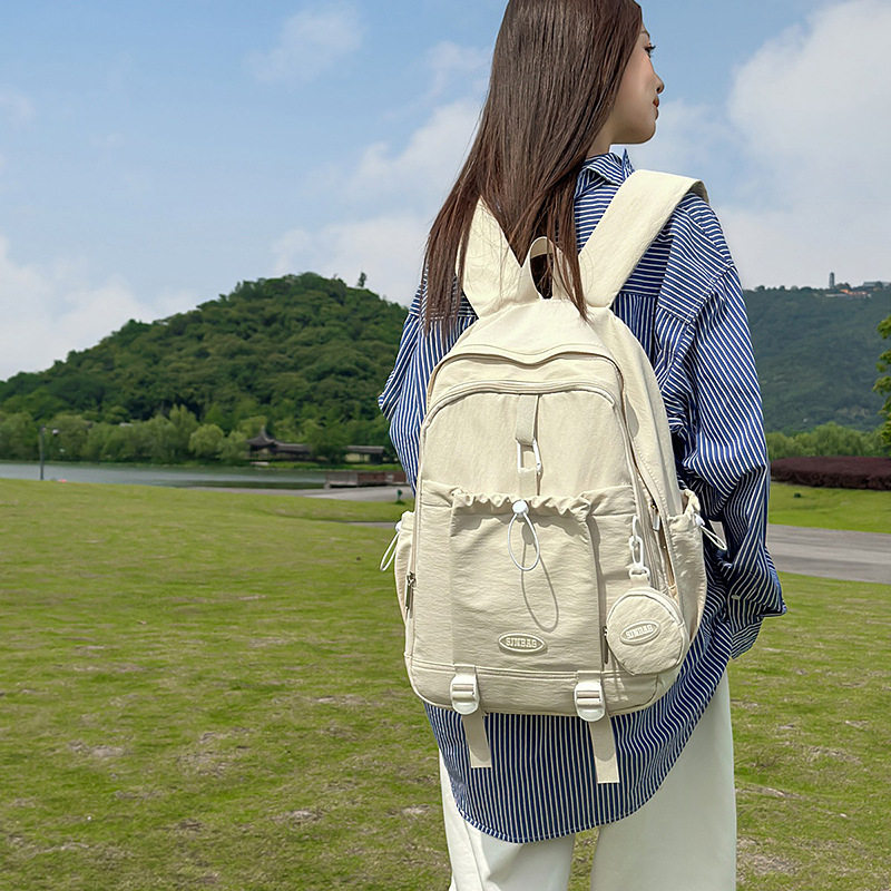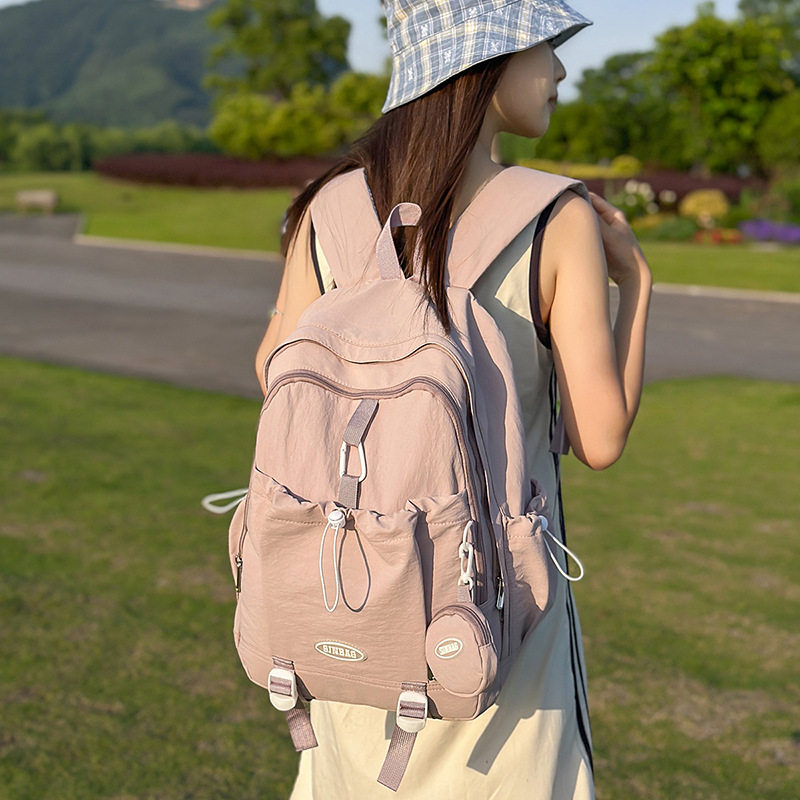 纯色女韩版原宿双肩包校园风初中高中学生书包女简约大容量背包