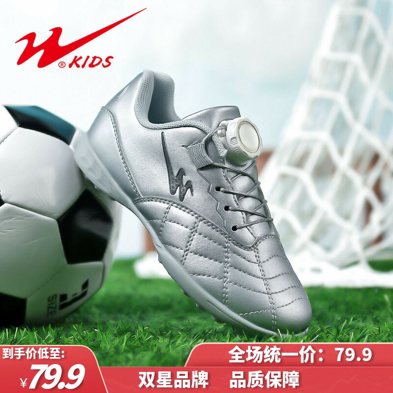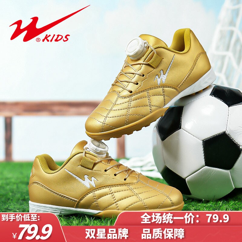双星儿童纽扣小学生球鞋女童透气运动新款跑步专用碎钉足球鞋男童
