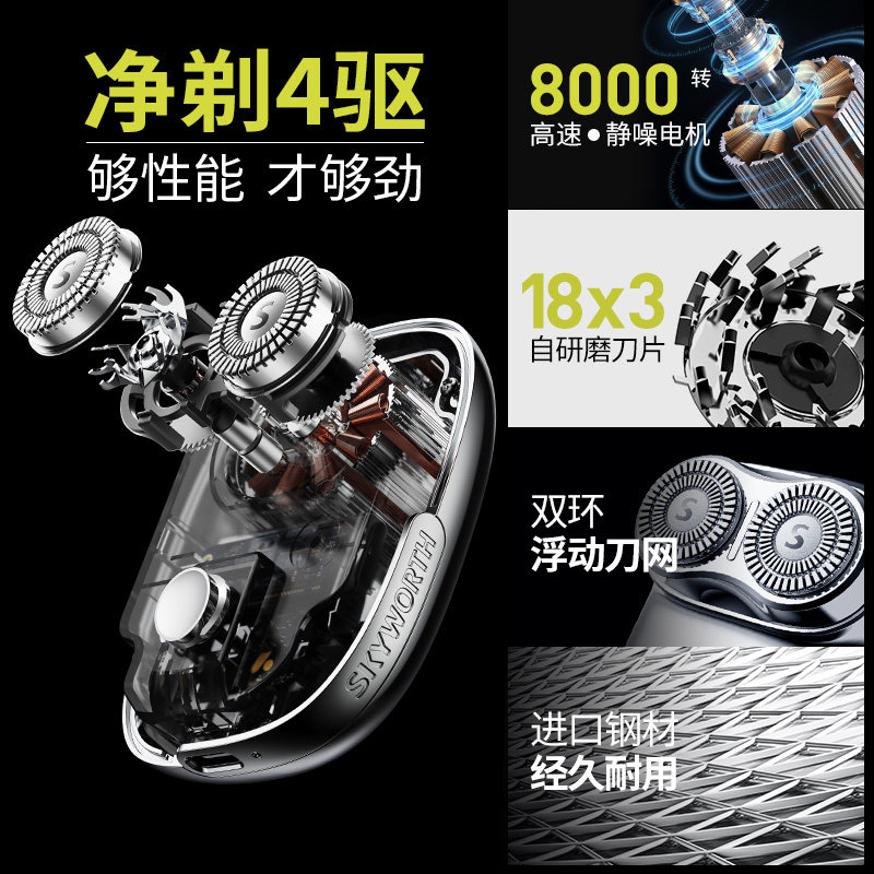 创维元石双头电动剃须刀迷你便携式刮胡刀全身水洗送男友老公礼物