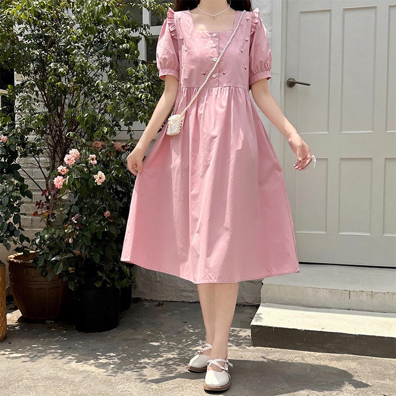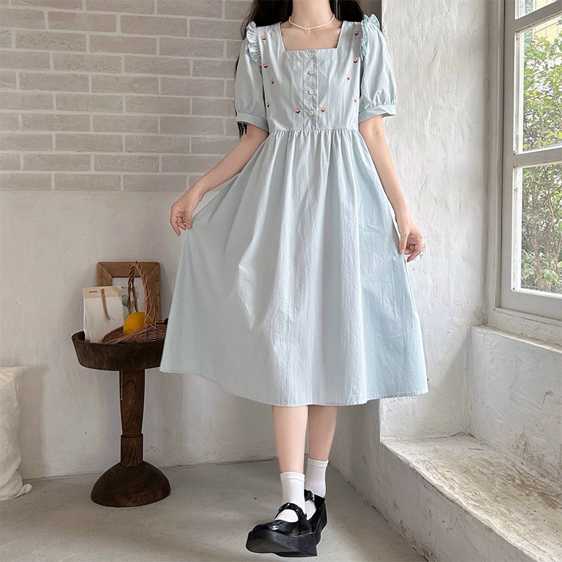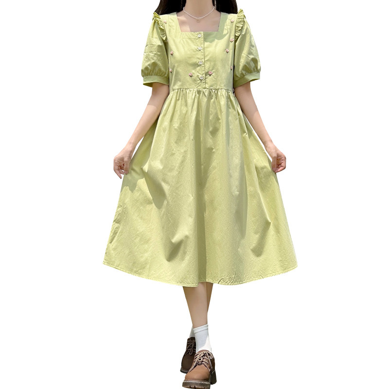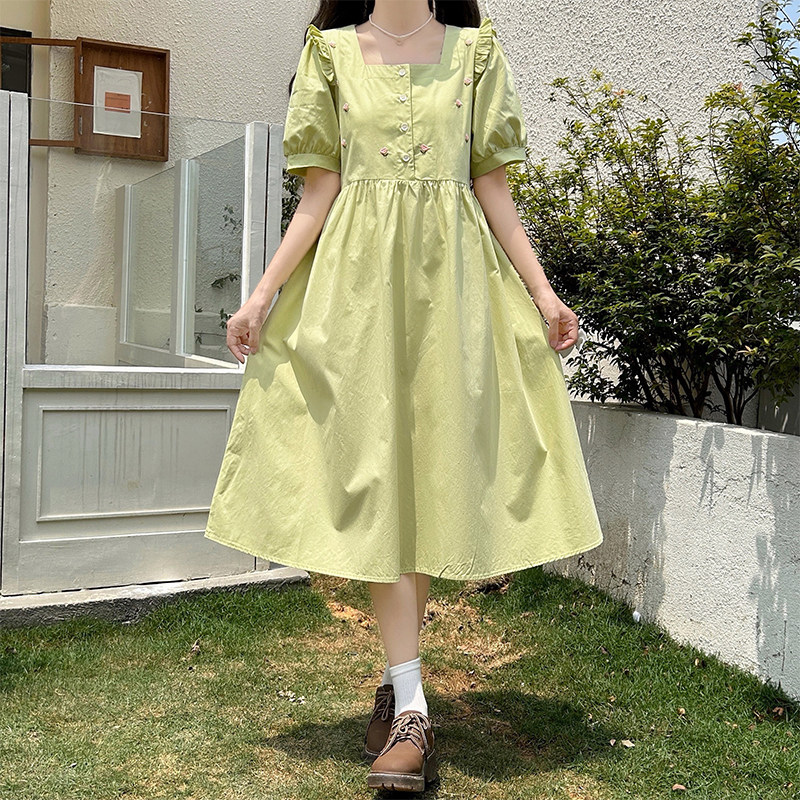 学院风法式白色连衣裙子女夏季小个子气质遮肚子减龄a字茶歇长裙