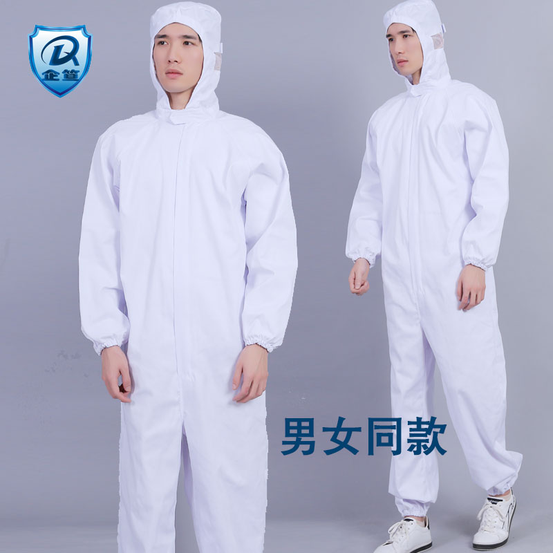 加长食品厂卫生防尘工作服连体套装车间男女款白色冬季纯棉劳保服