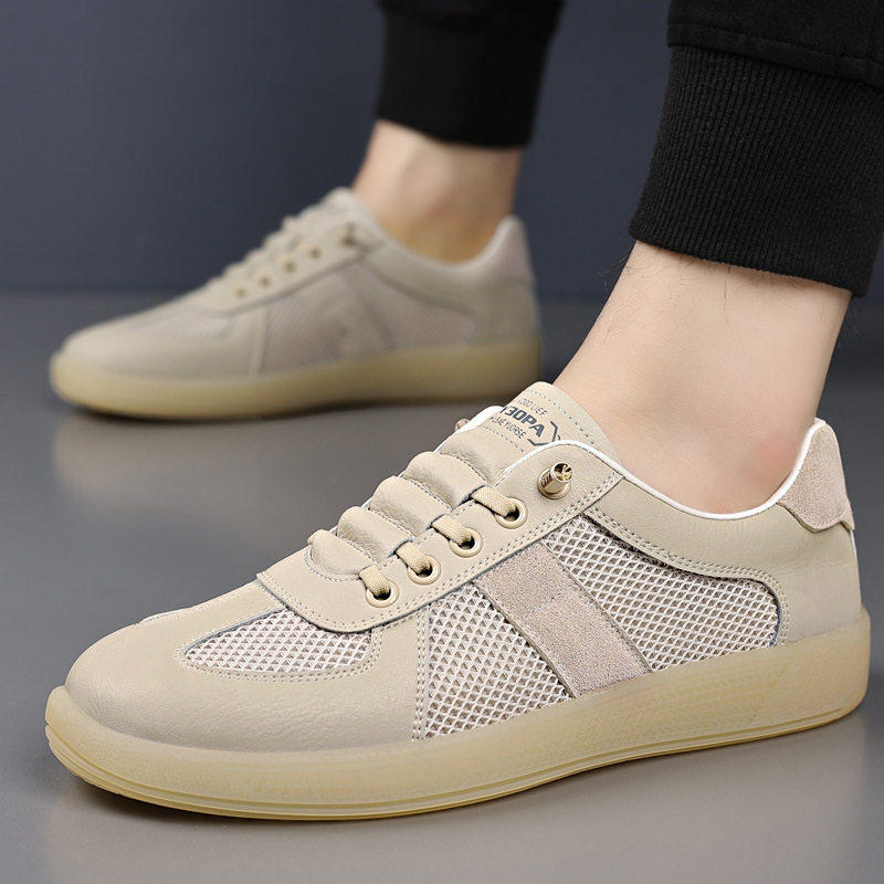 王师傅手工鞋2026款休闲板鞋男夏季透气网面软底牛筋底白色运动鞋
