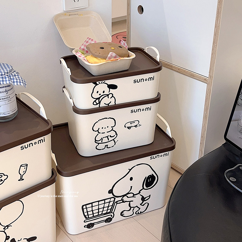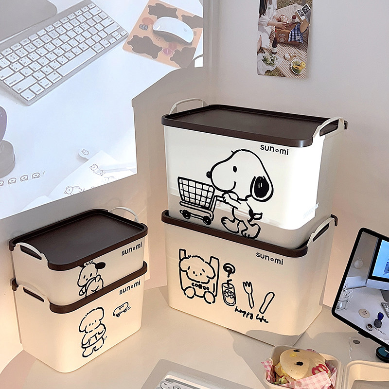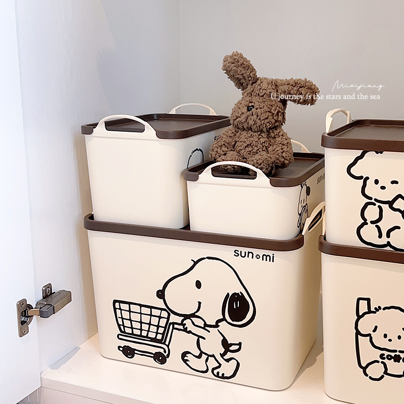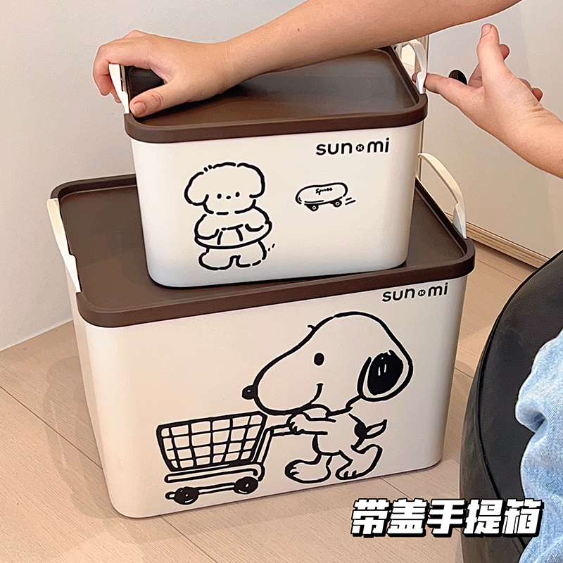 复古奶油小狗桌面收纳盒带盖宿舍衣物手提收纳箱零食化妆品收纳筐