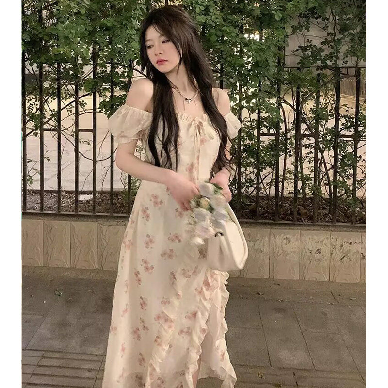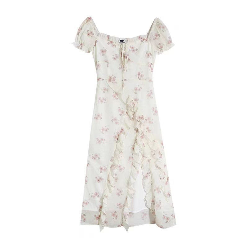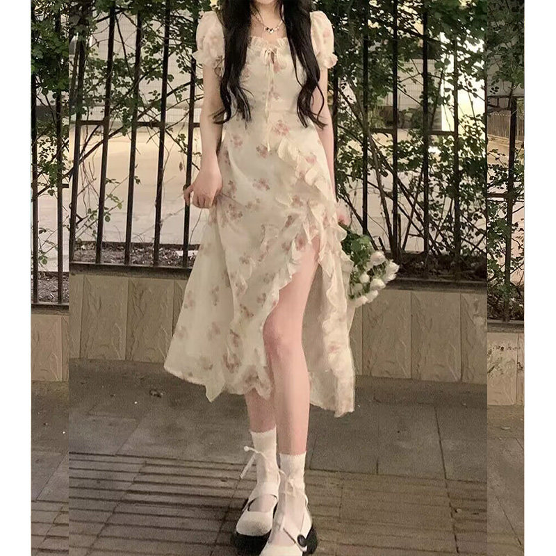 夏季韩系温柔风小个子气质高级感减龄荷叶边开叉碎花显瘦连衣裙女