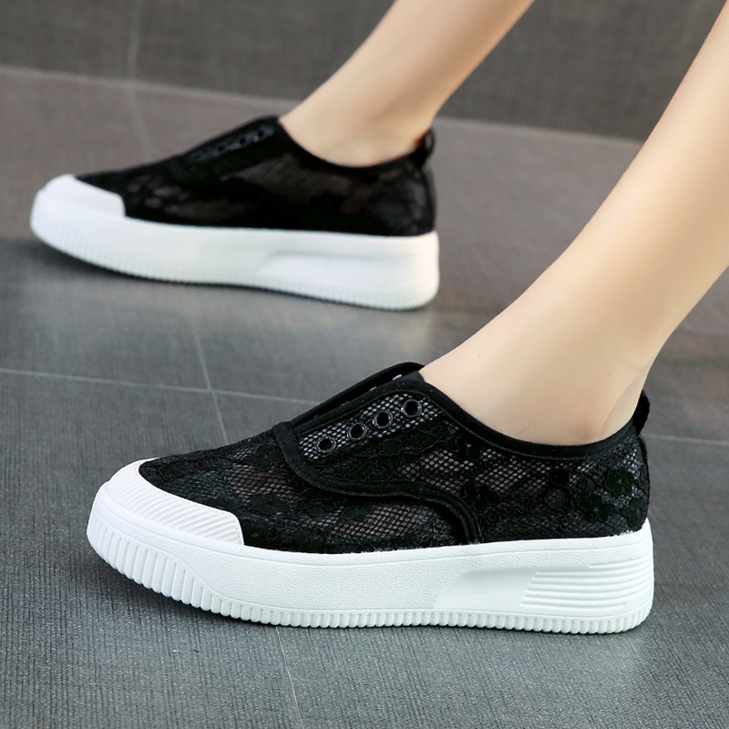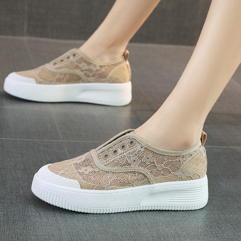 渔夫鞋女2026夏季新款小香风女鞋镂空蕾丝透气一脚蹬厚底乐福网鞋