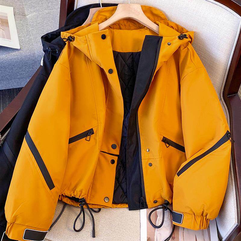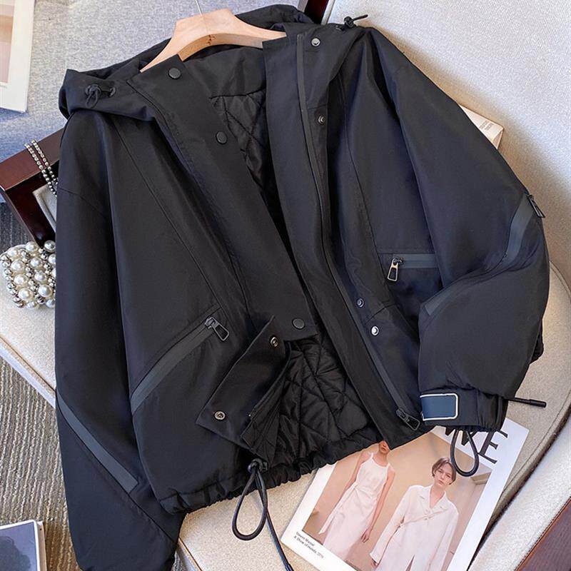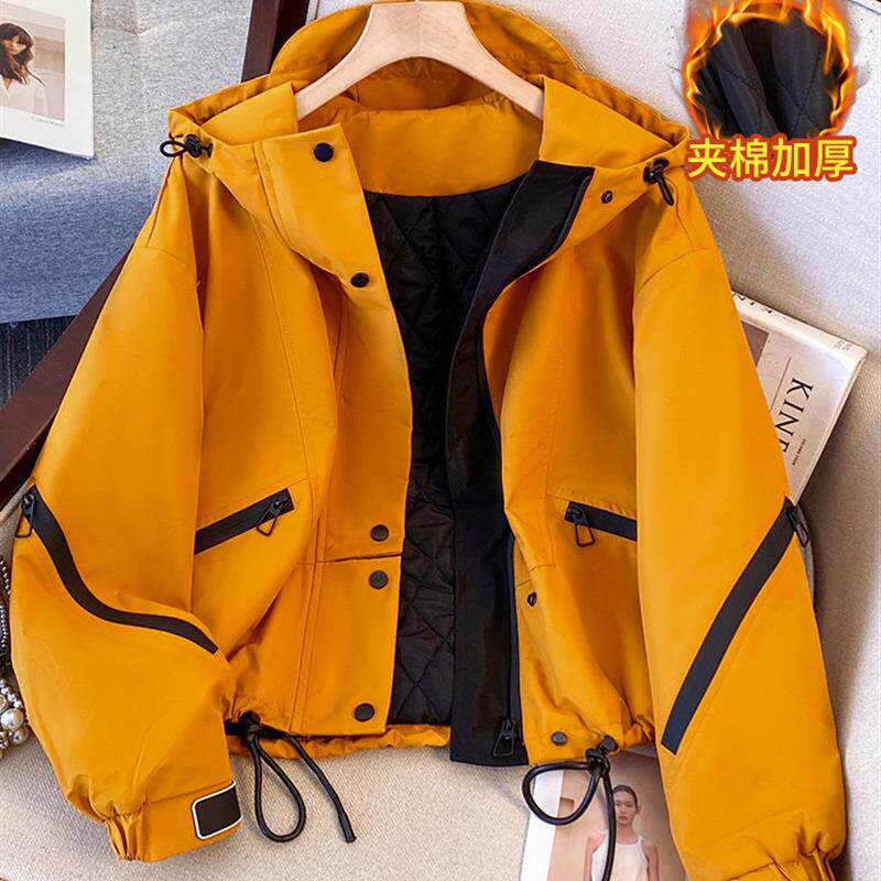 黑色派克服棉服女款2025新款冬季短款巨好看的工装冲锋衣夹棉外套