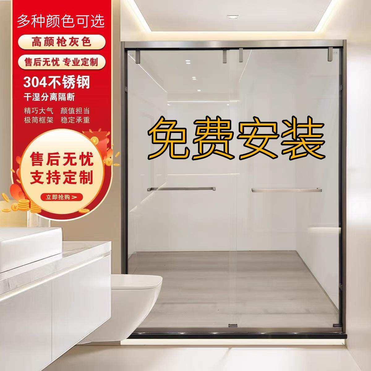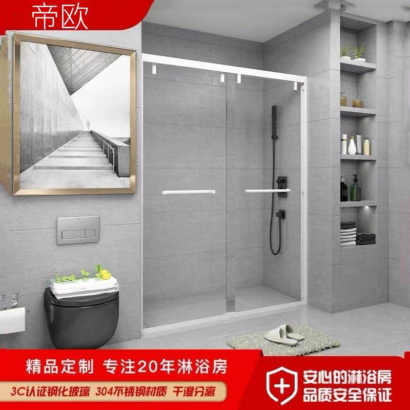 不锈钢淋浴房定制一字型浴屏干湿分离隔断卫生间移门整体浴室玻璃