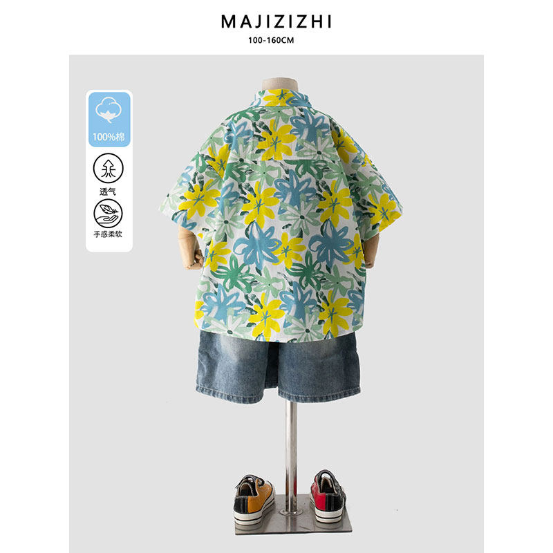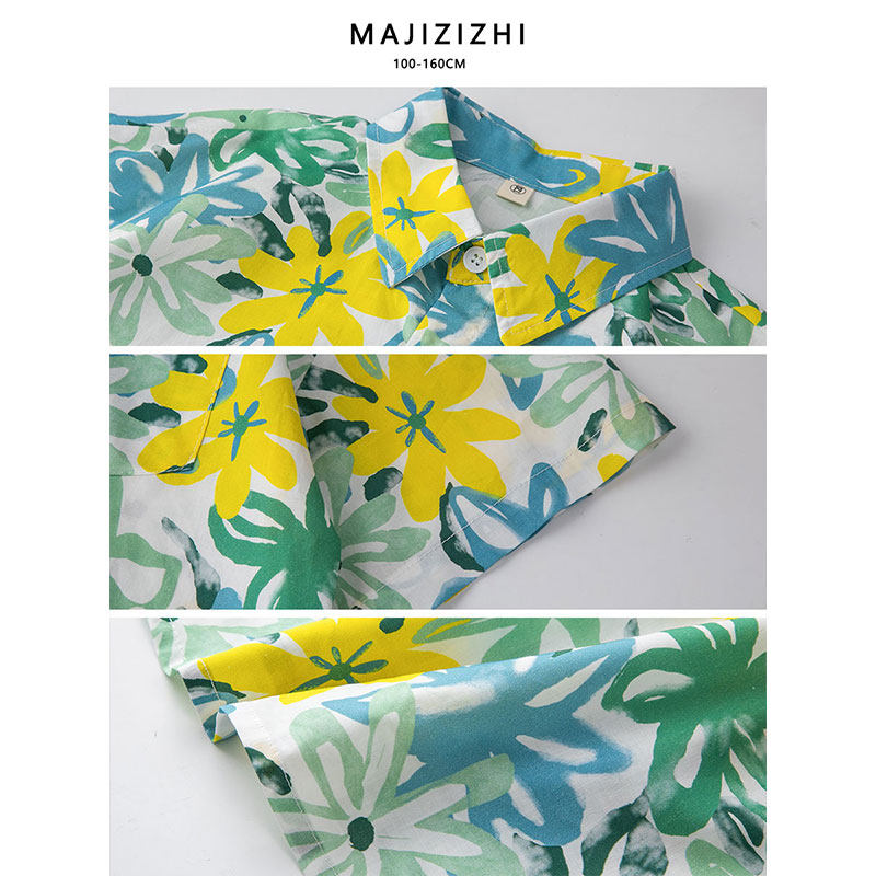 【60支纯棉】儿童花衬衫男童短袖衬衣沙滩风薄款翻领上衣开衫外套