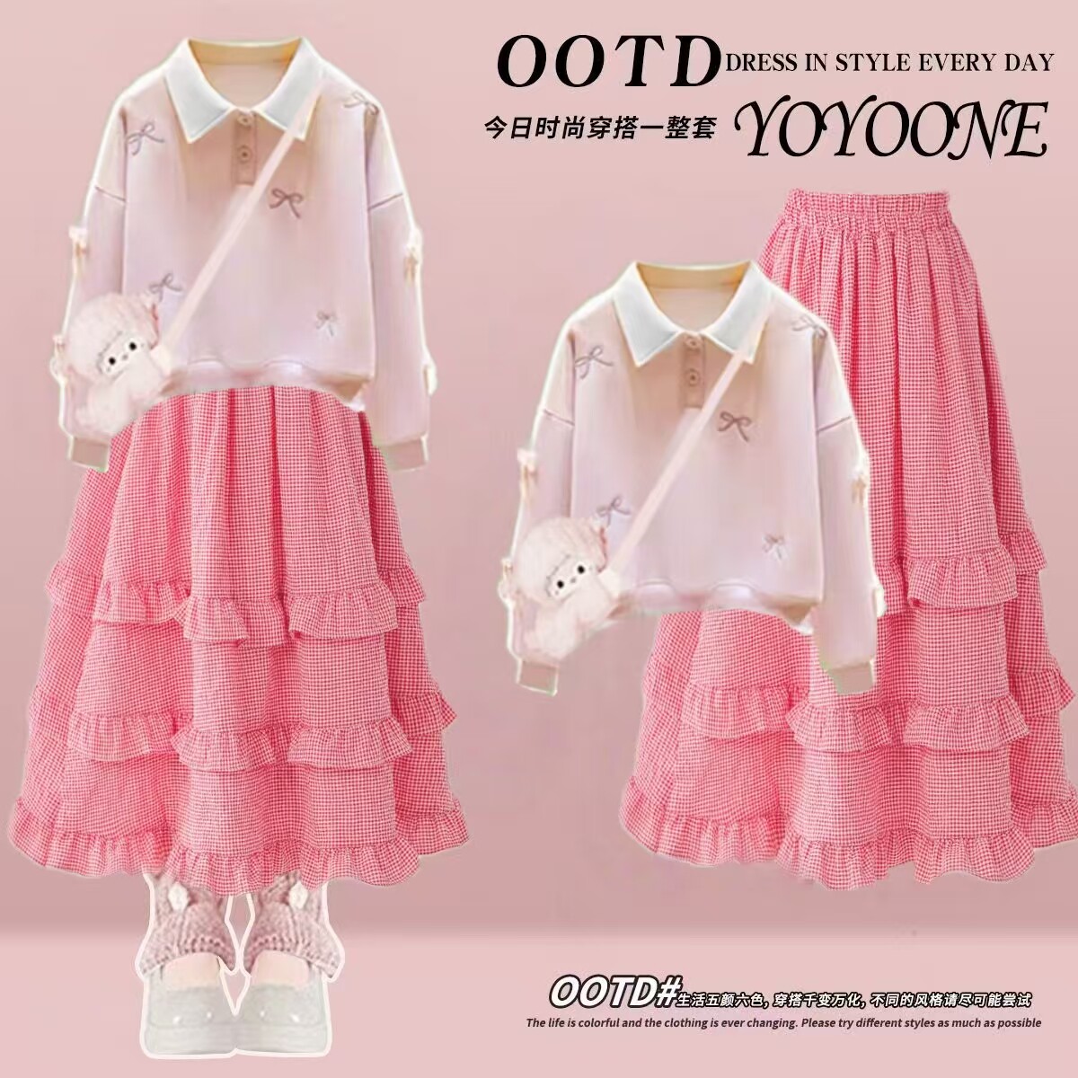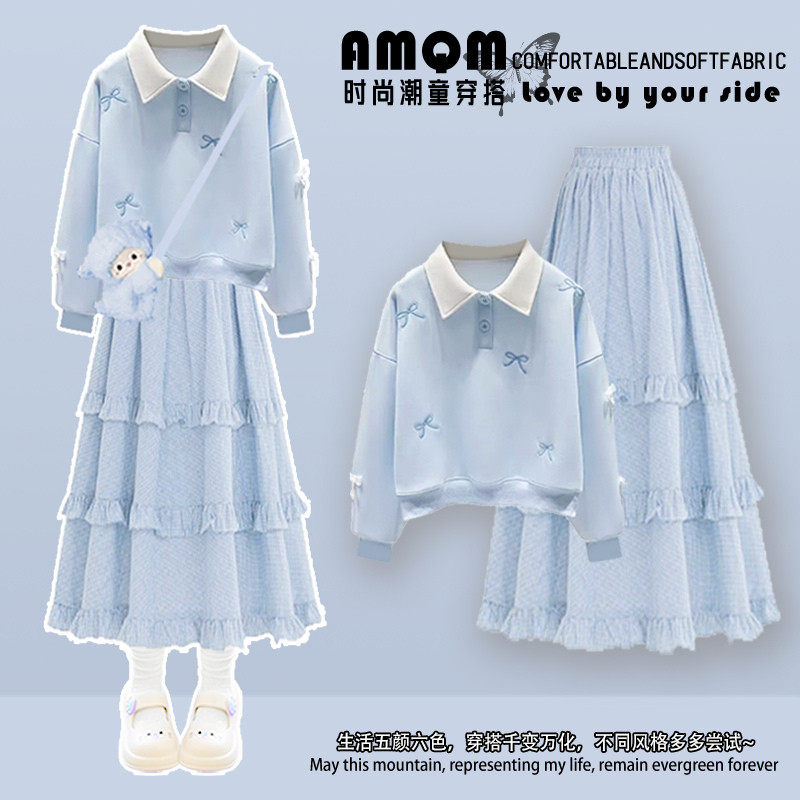 女童春秋季连衣裙2026新款女大童洋气时尚多巴胺巨好看的套装裙子