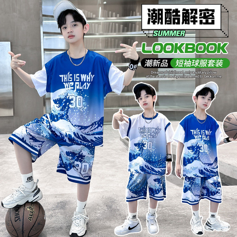 男童夏装套装篮球服2026新款洋气男孩夏季短袖儿童装运动速干球衣