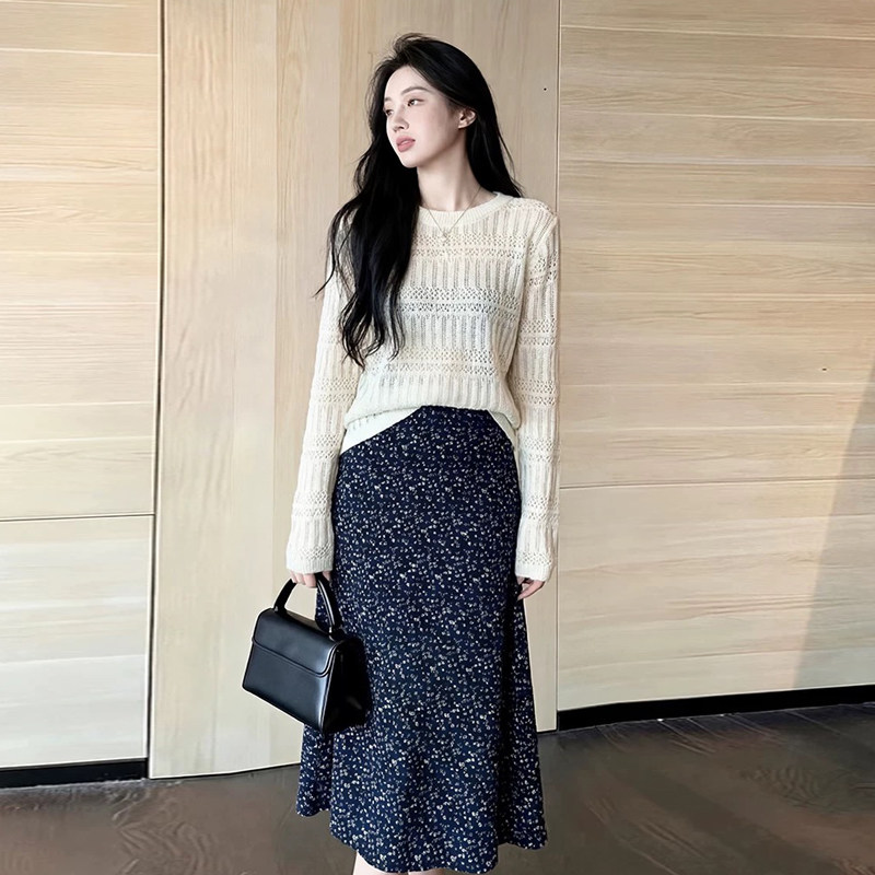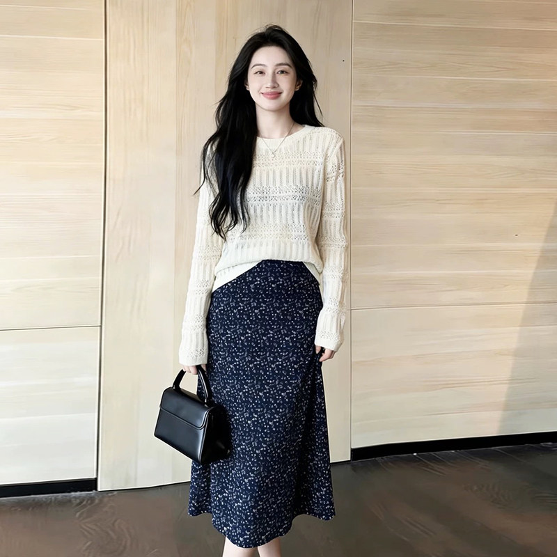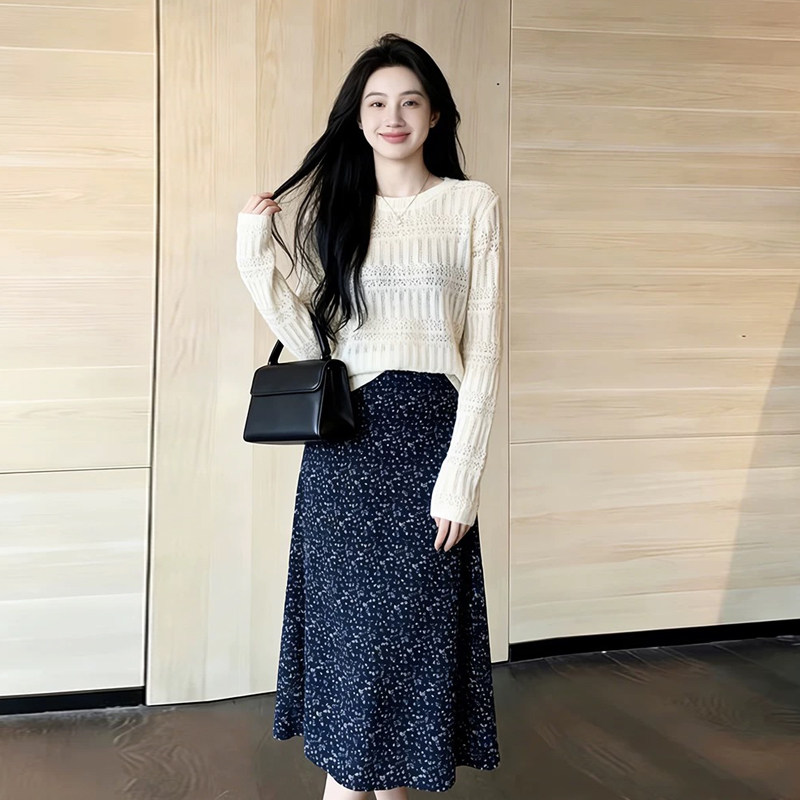 早春漂亮的两件套装女2026新款白色针织衫碎花半身裙洋气套装女