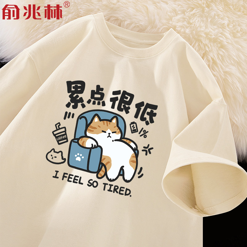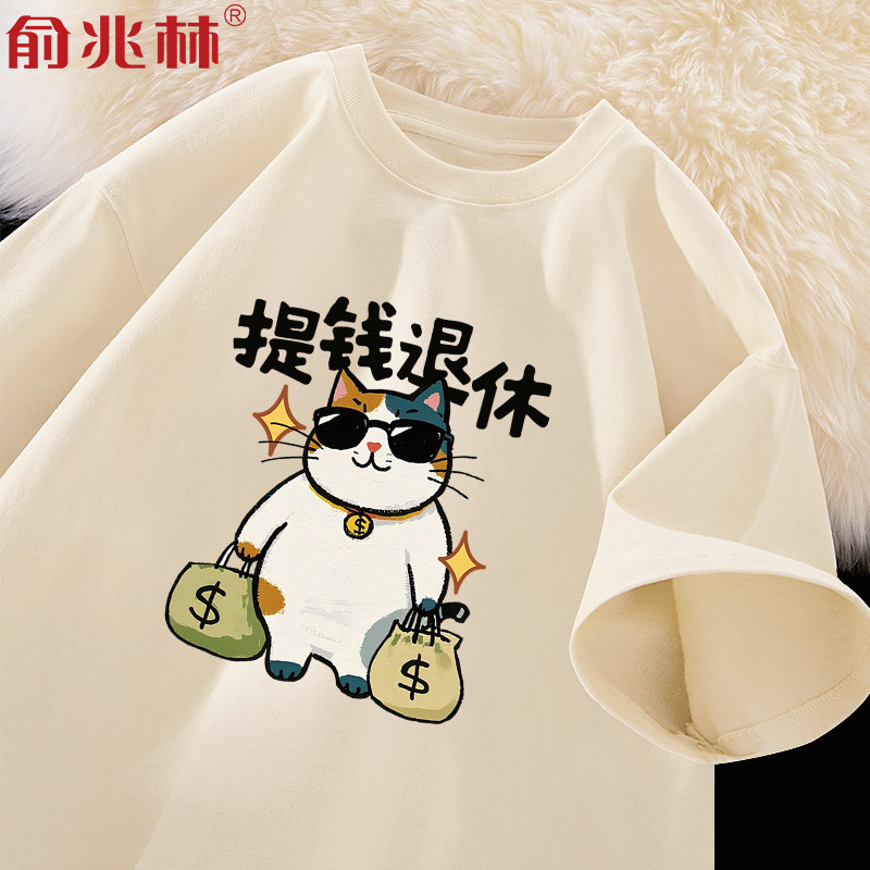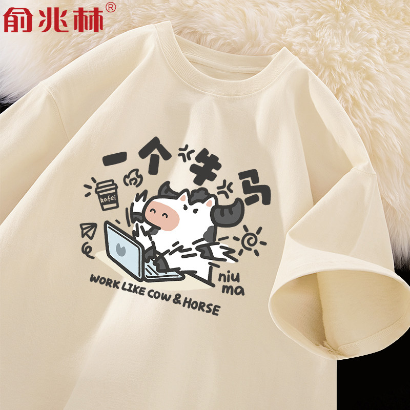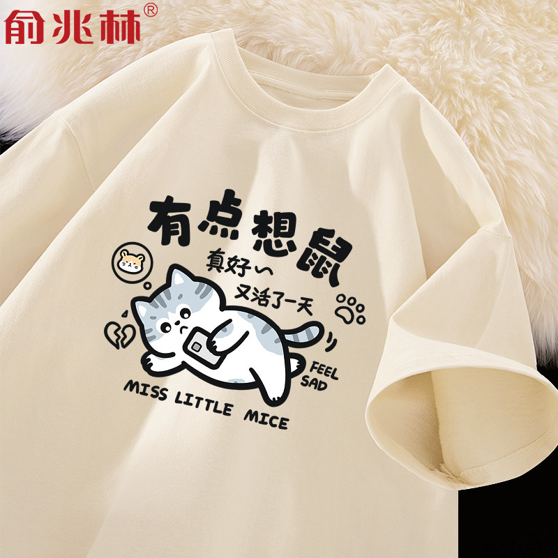 米白趣味搞笑卡皮巴拉短袖t恤男2026新款青少年宽松休闲大码半袖