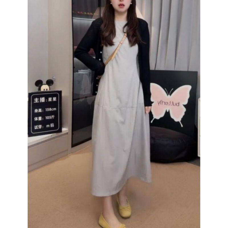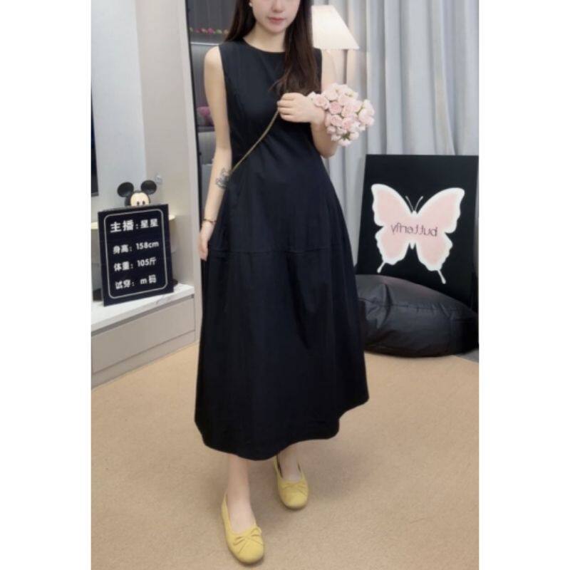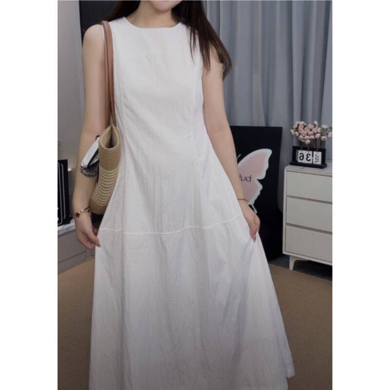 2025夏季新款花苞无袖背心连衣裙小个子白色通勤收腰显瘦过膝长裙