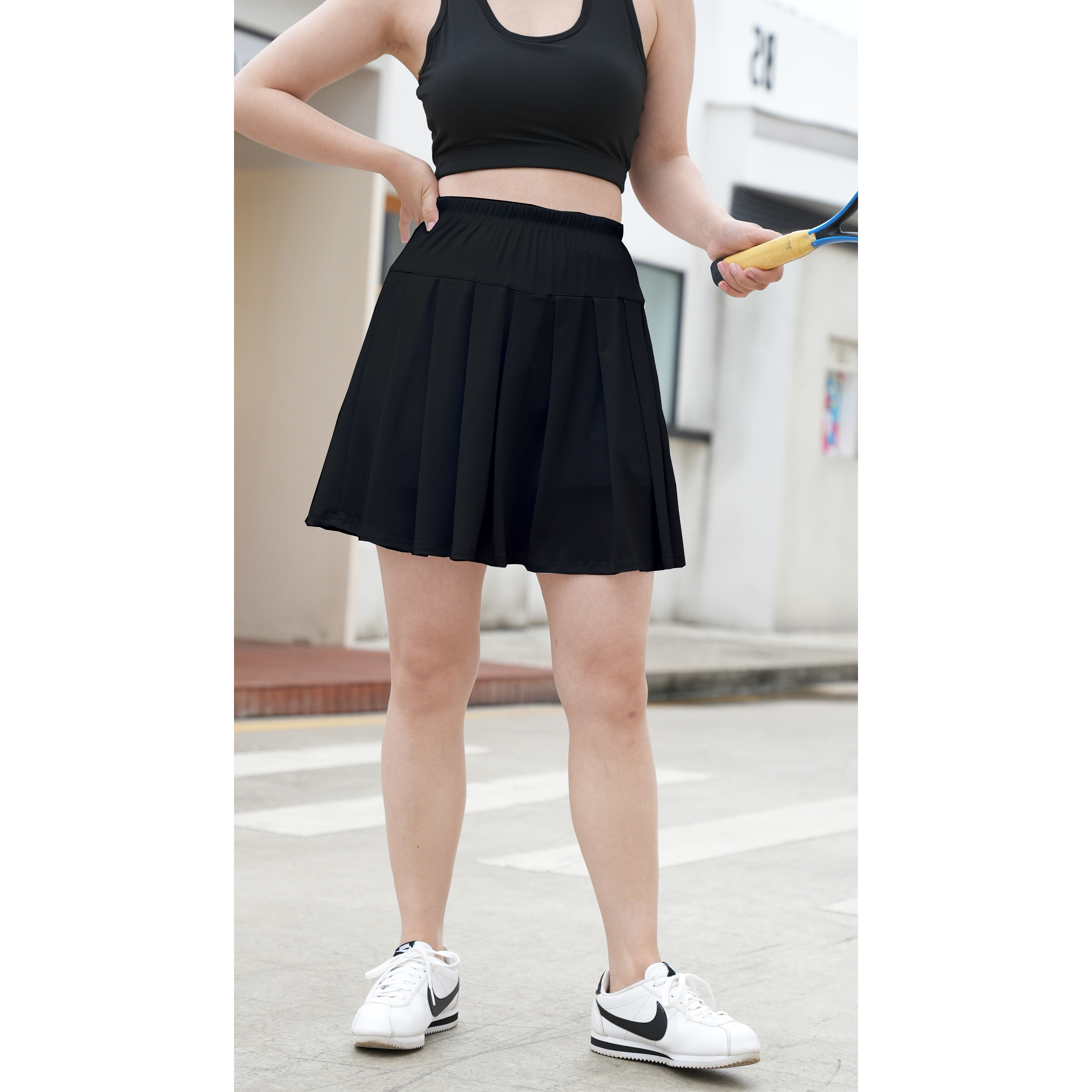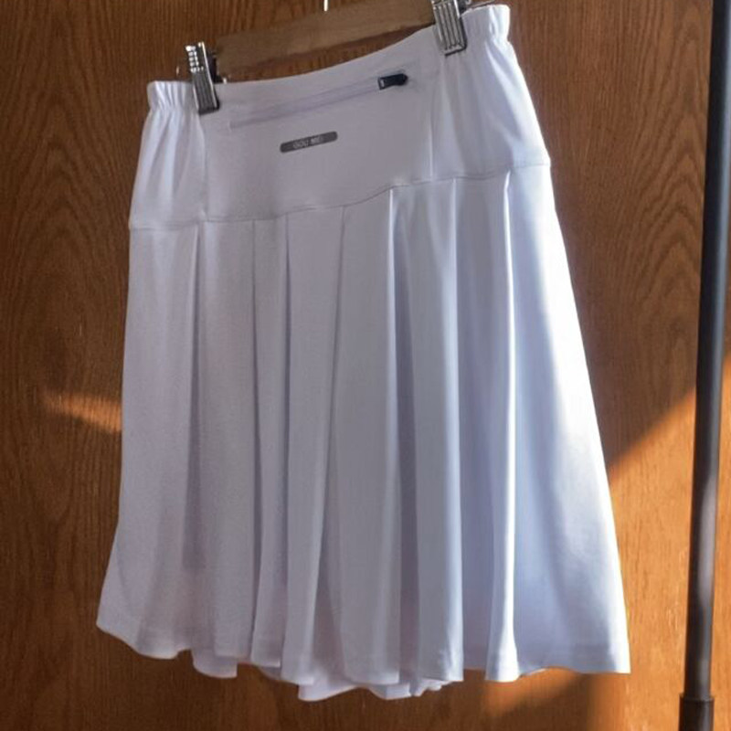 加大码加长运动短裙女假两件防走光健身跑步中裙羽毛球百褶白裙子