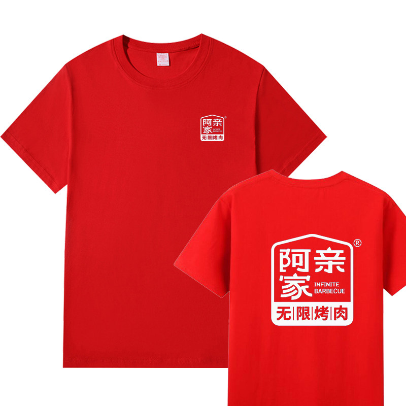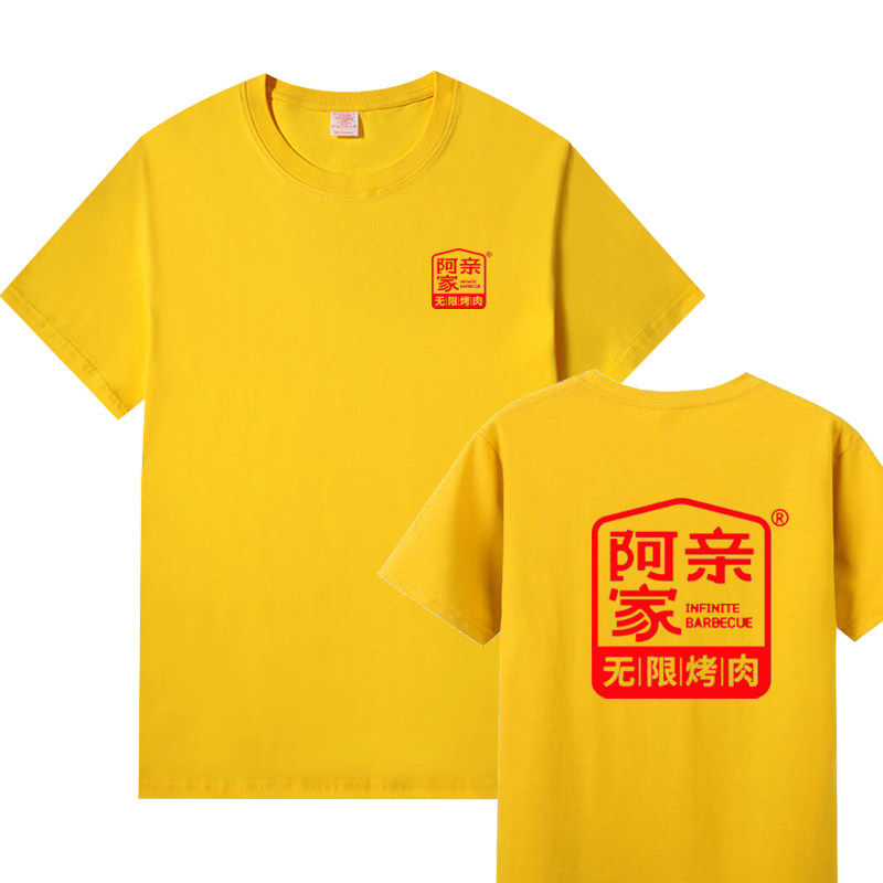 阿亲家烤肉店工作服短袖定制火锅奶茶餐饮店男女服务员纯棉T恤夏