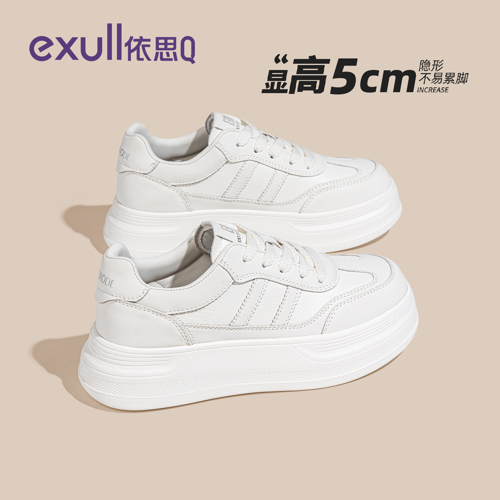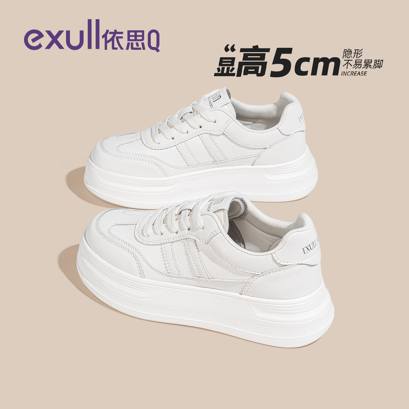 依思q厚底小白鞋女款2026春季新款轻便百搭板鞋增高白色休闲女鞋