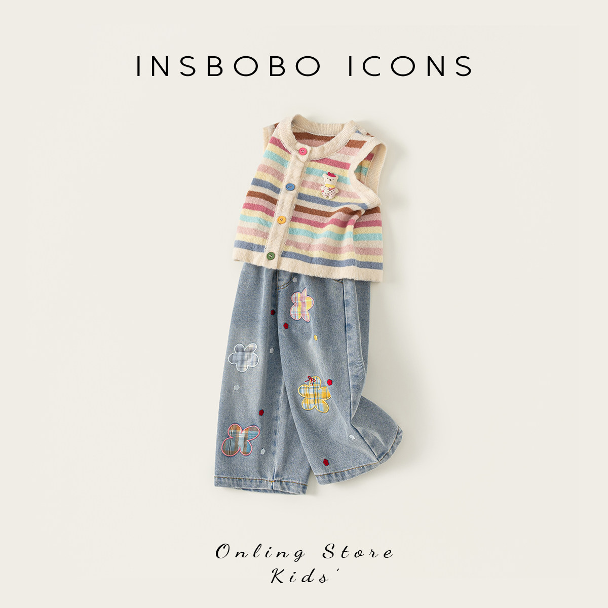 INSbobo女童毛衣2026春季新款儿童马甲宝宝套装好看上衣洋气衣服