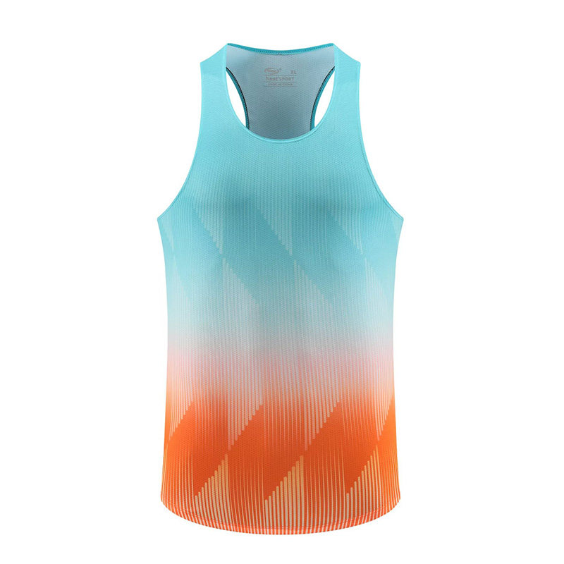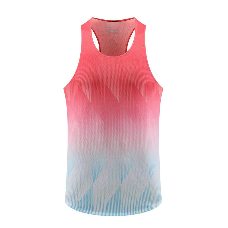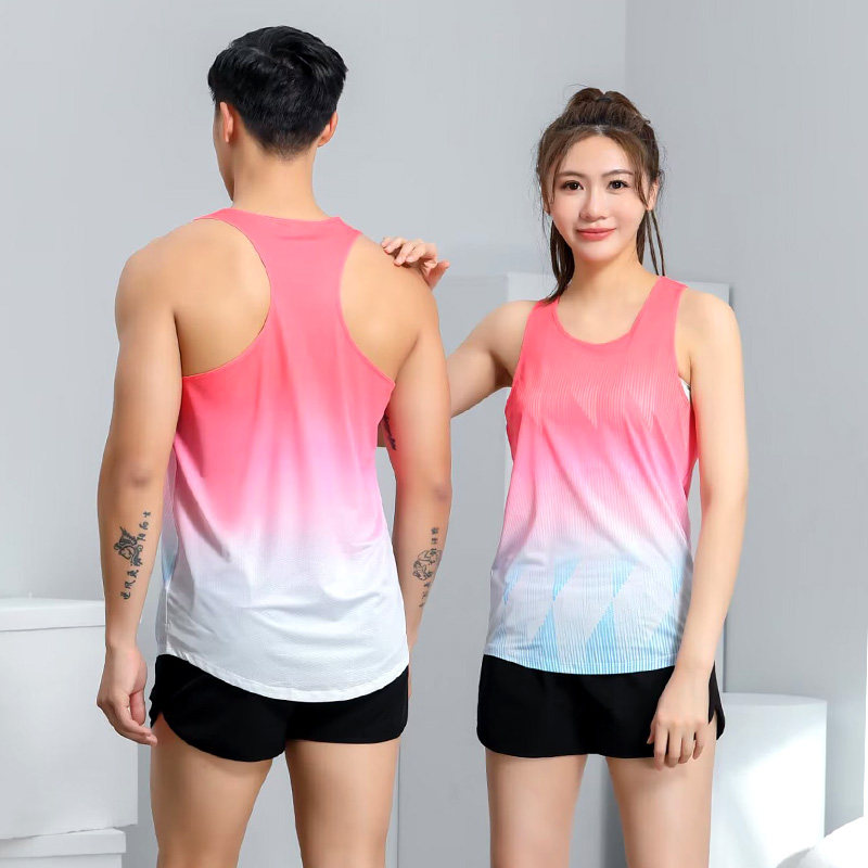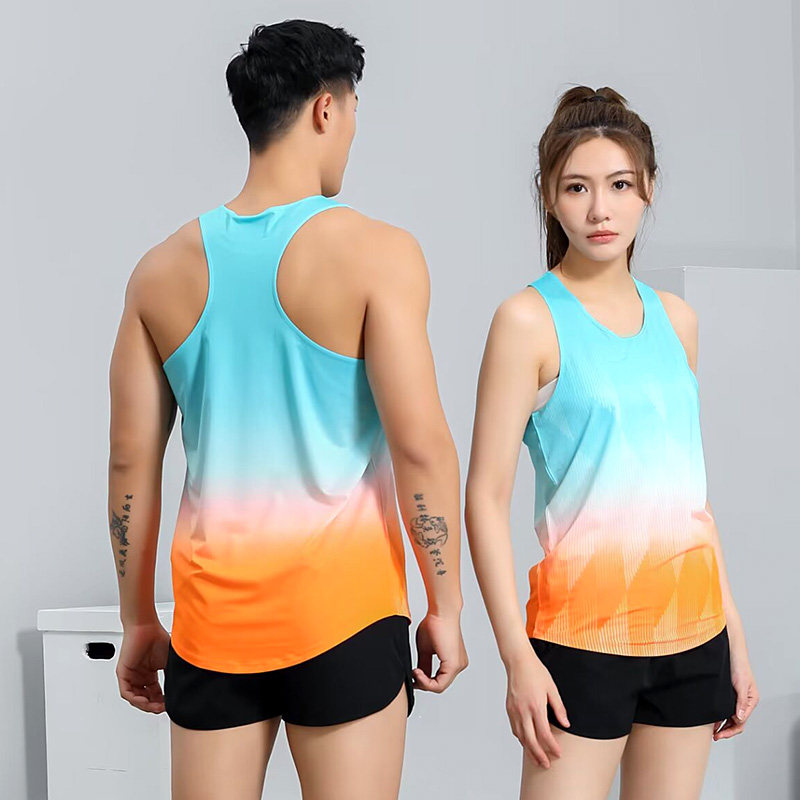 马拉松跑步工字背心男女田径训练服速干运动健身服渐变色无袖上衣