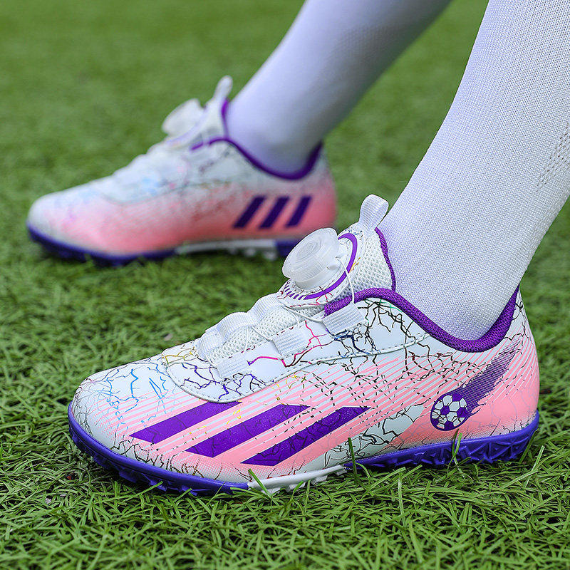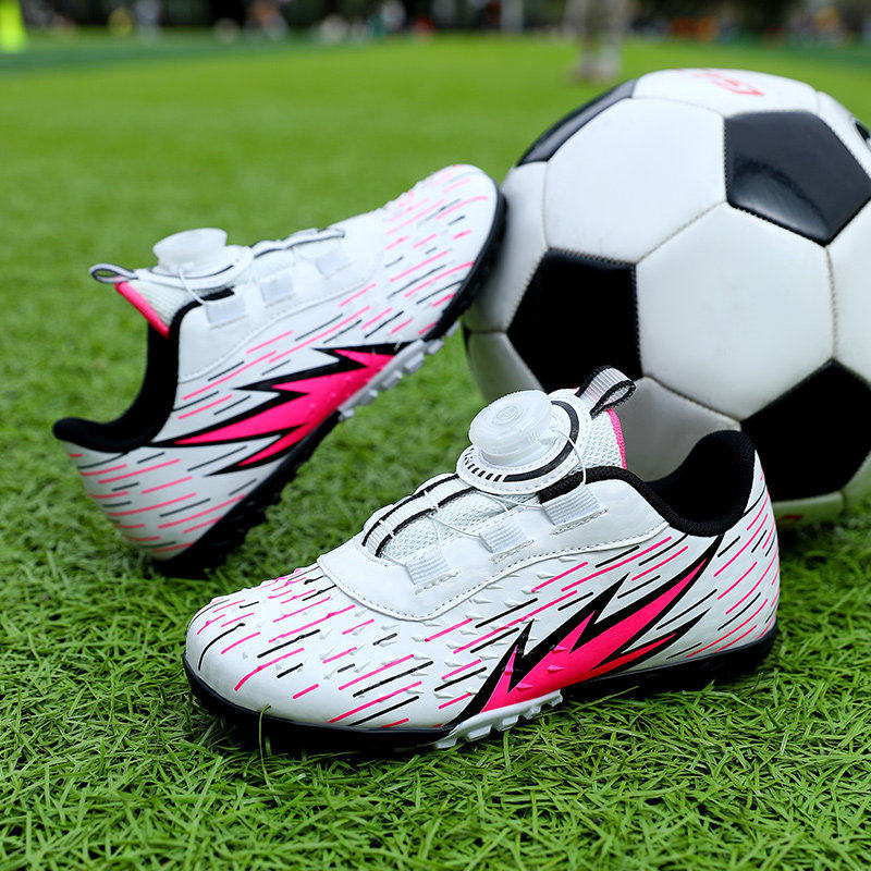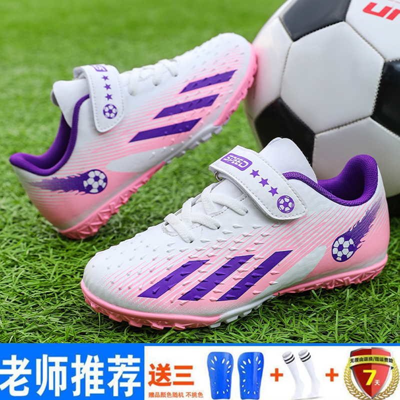 小李子刺客儿童足球鞋魔术贴女童中小学生男童女孩碎钉鞋免系带粉
