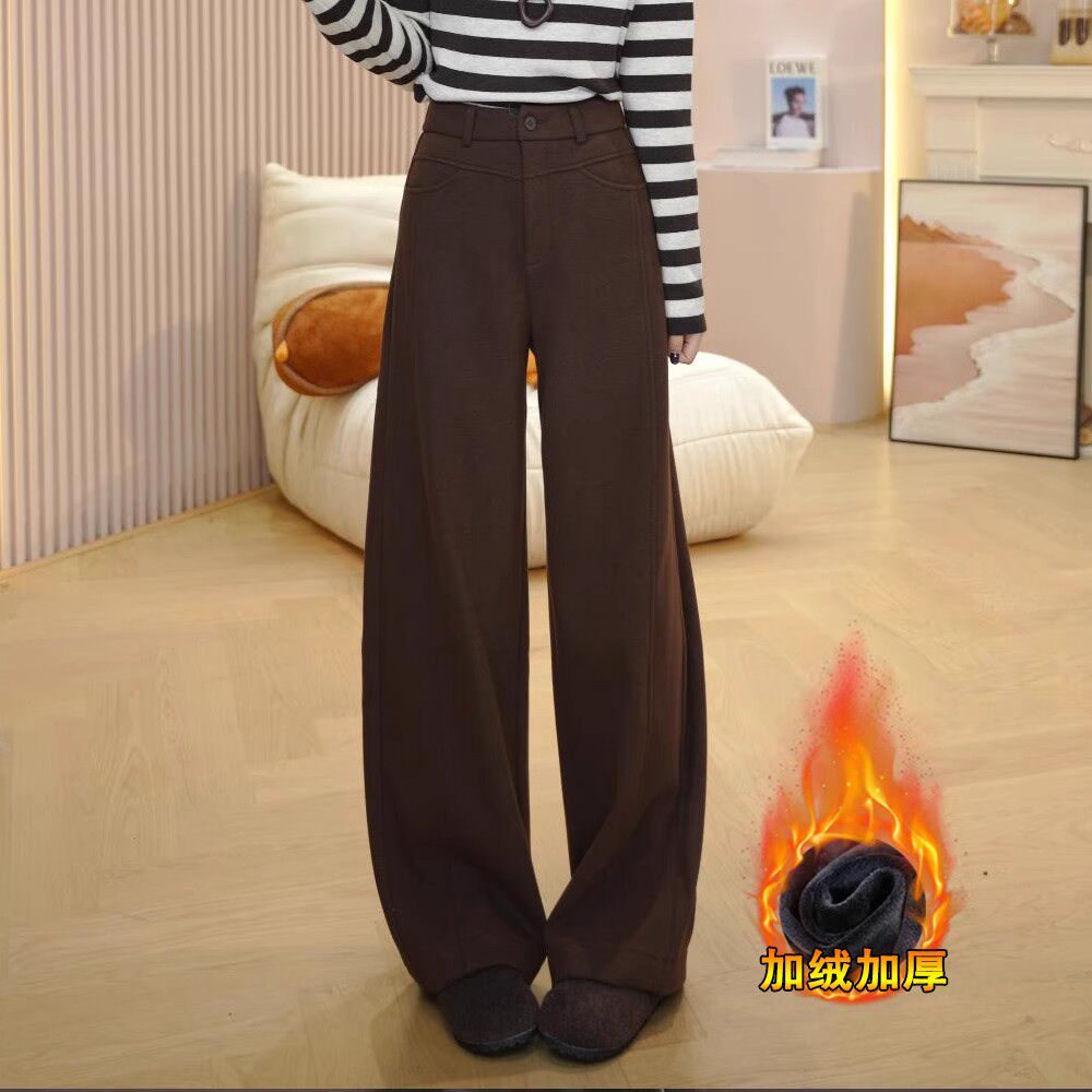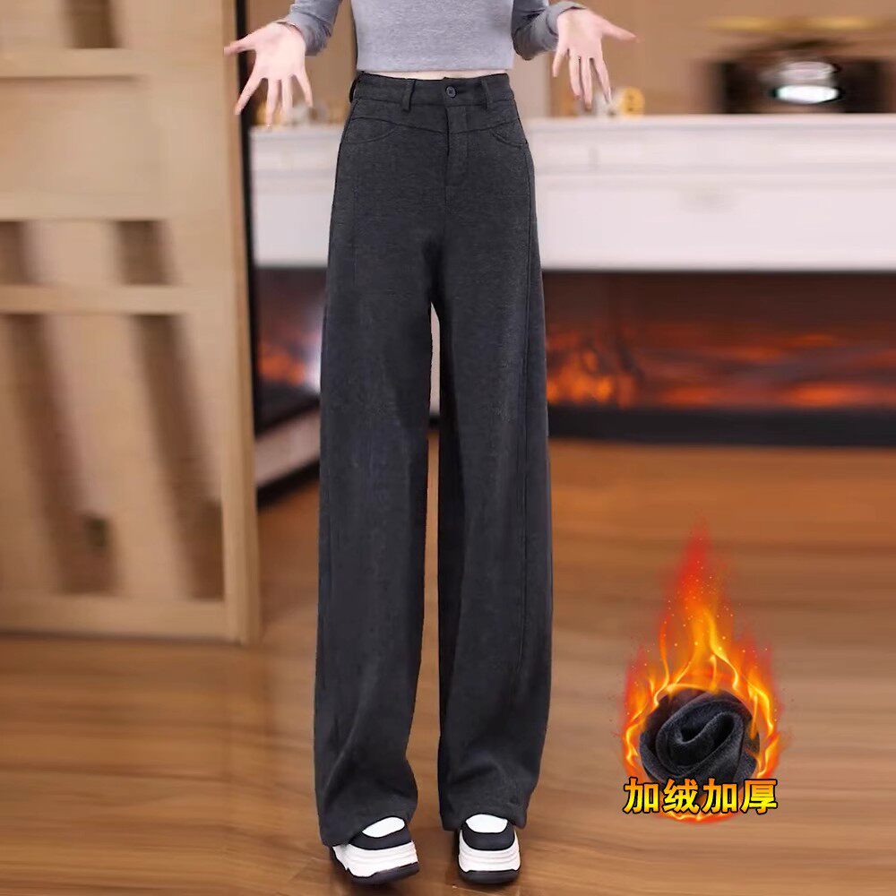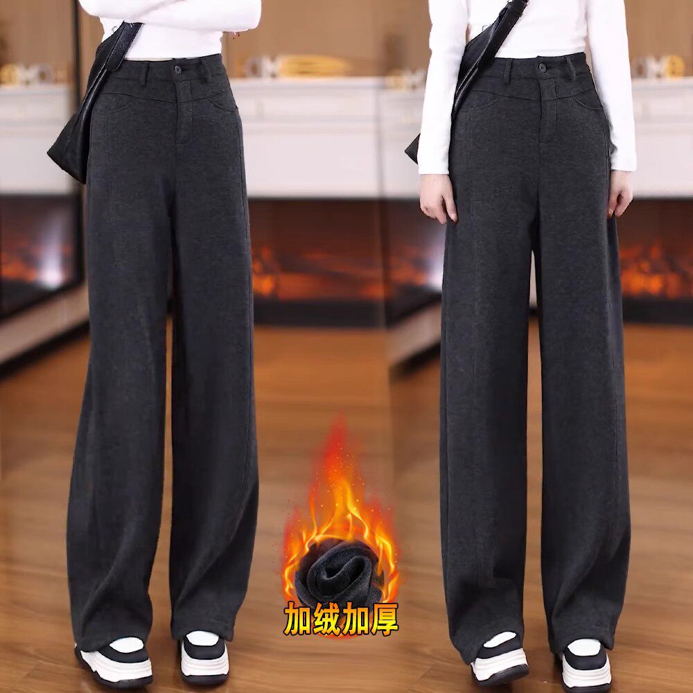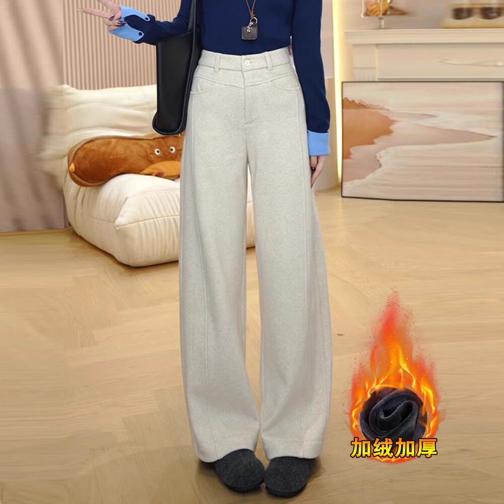加绒毛呢裤子女2026新款今年流行爆款冬季加厚保暖窄版直筒阔腿裤