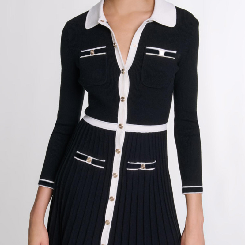 311线报网描述:气质收腰短款款式 黑白撞色饰边设计