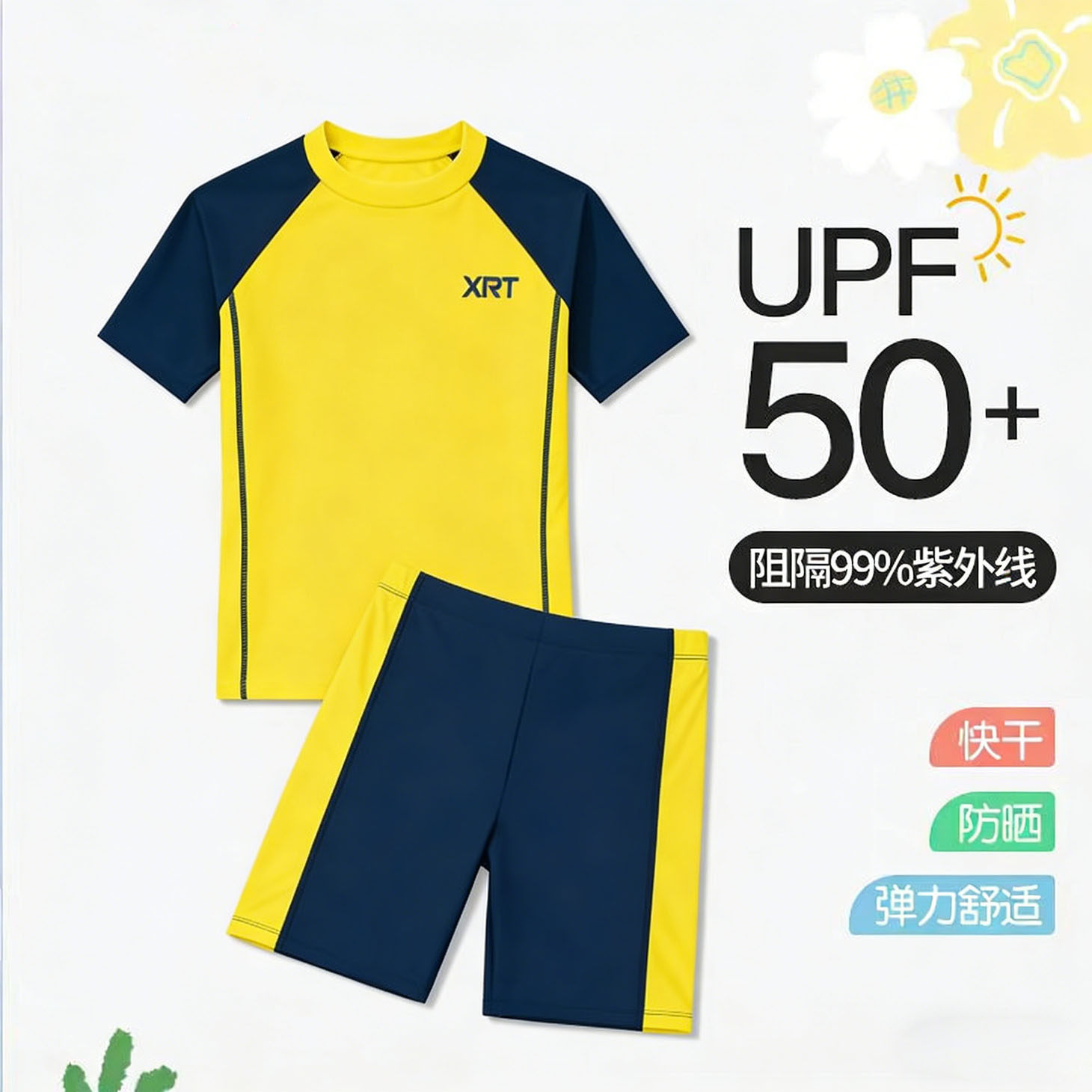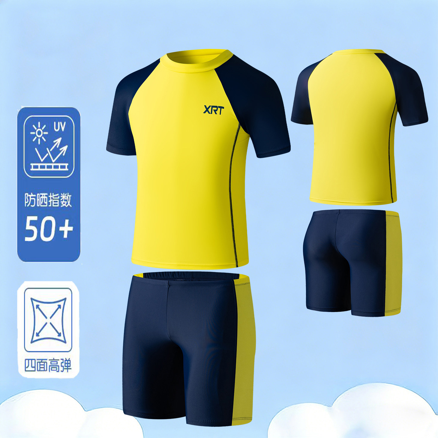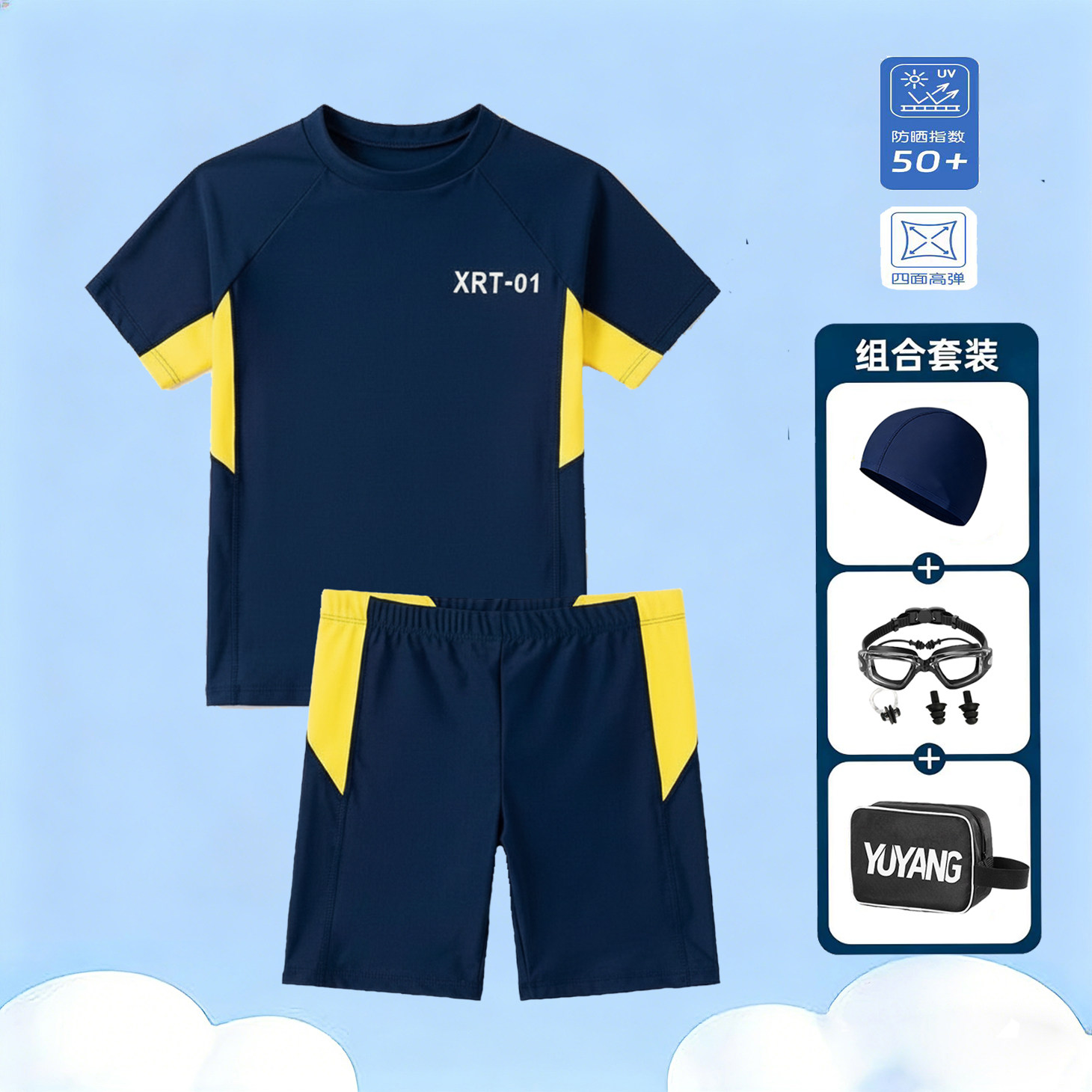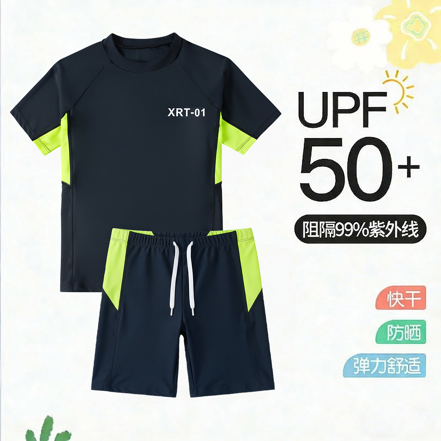 分体泳衣套装男童少年短袖短裤游泳衣男孩子青少年学生速干高弹性