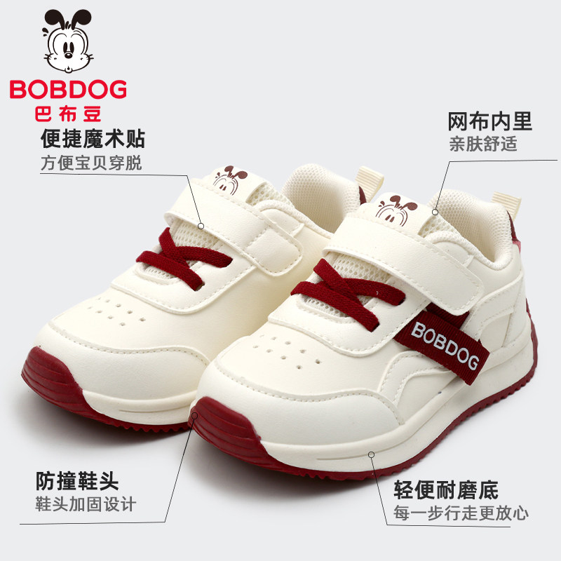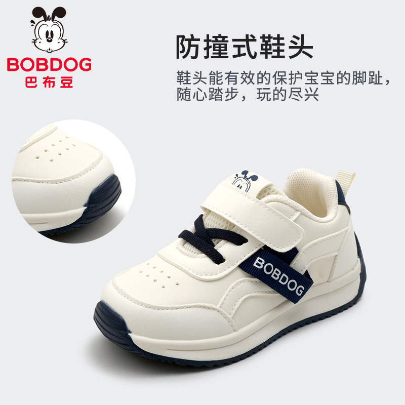巴布豆儿童运动鞋2026春秋款网鞋童鞋皮面单鞋防滑男女宝宝学步鞋