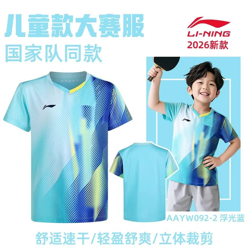 2026李宁儿童乒乓球比赛服上衣训练短袖童装运动速干国家队同款