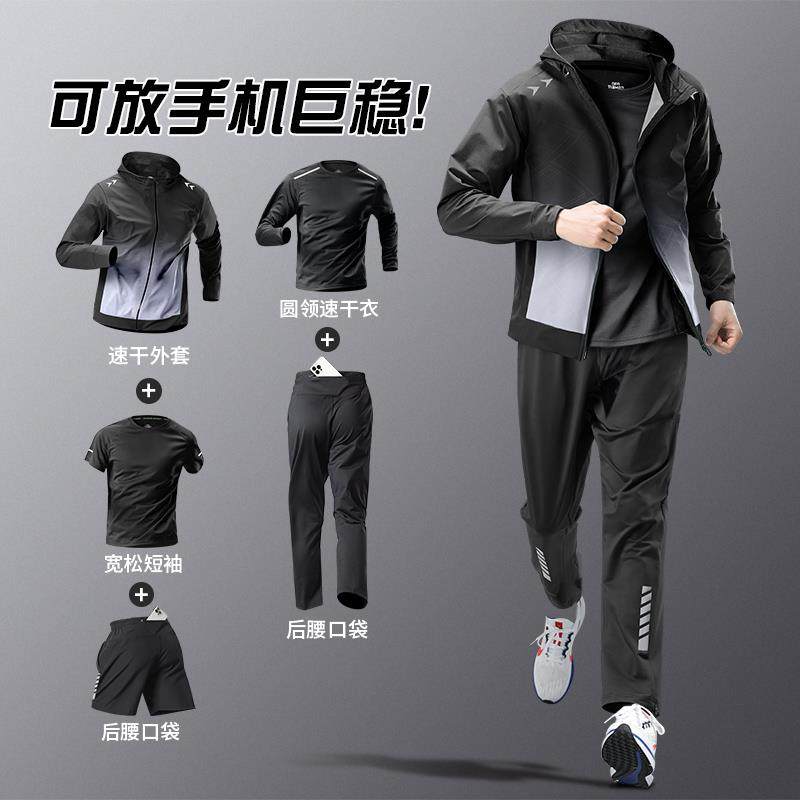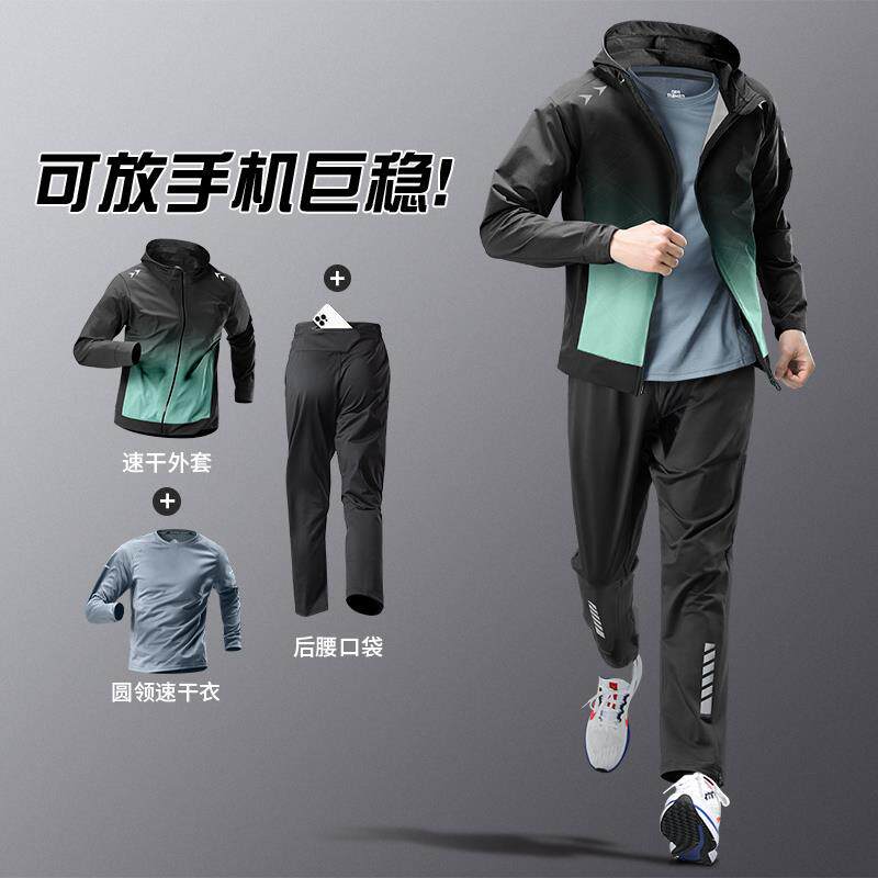 高档跑步套装男业专后可放手机马拉松训练腰服秋体冬育运动速干健