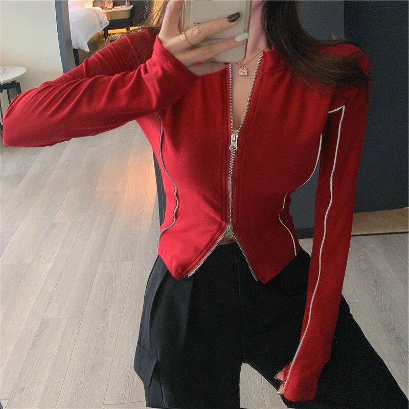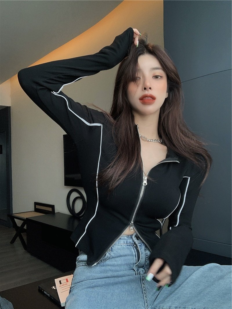 大码女装设计感短款长袖瑜伽服秋季2022新款胖nmm显瘦紧身T恤上衣