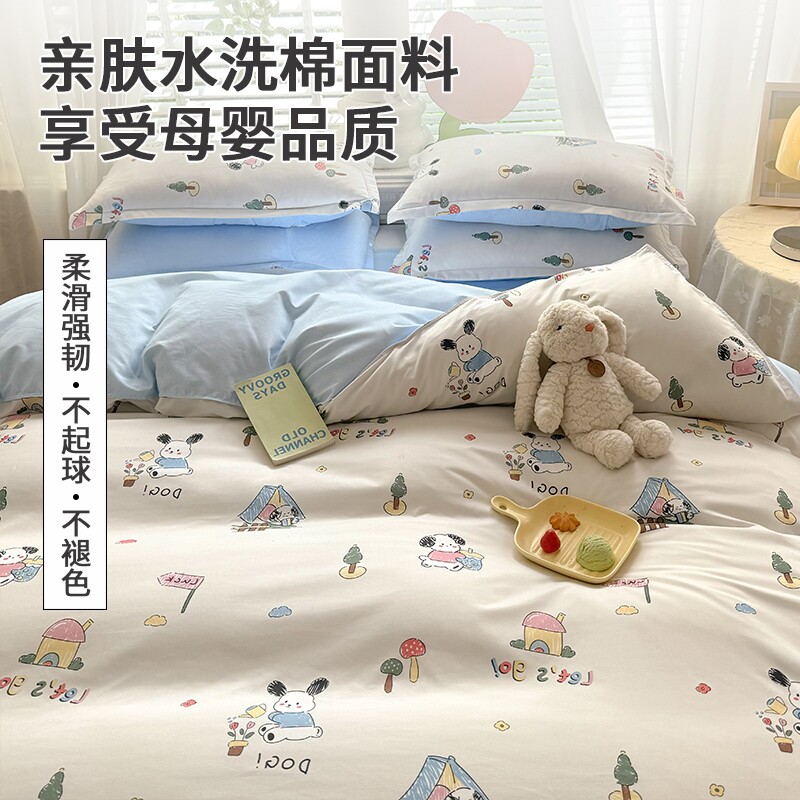水洗棉床上四件套床单被套三件套被单非全棉纯棉夏季学生宿舍2025