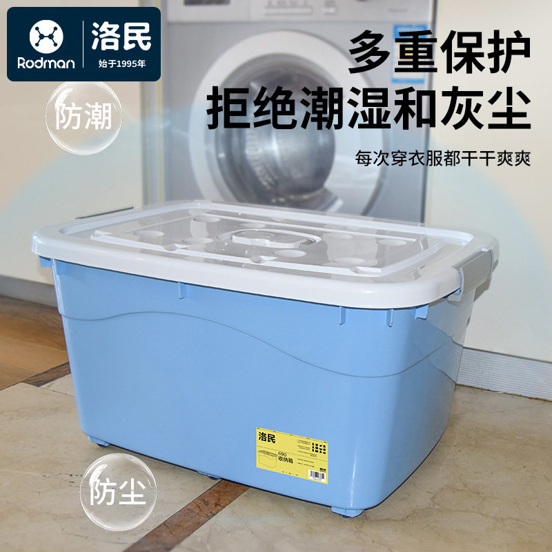 洛民牌收纳箱超大号收纳箱带滑轮家用加厚储物整理箱带盖收纳盒
