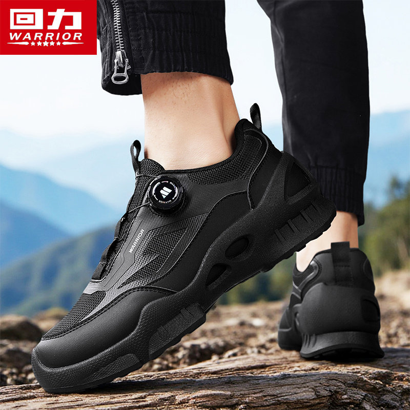 回力男鞋夏季2026新款网面透气运动鞋休闲防滑一脚蹬旋钮跑步鞋男