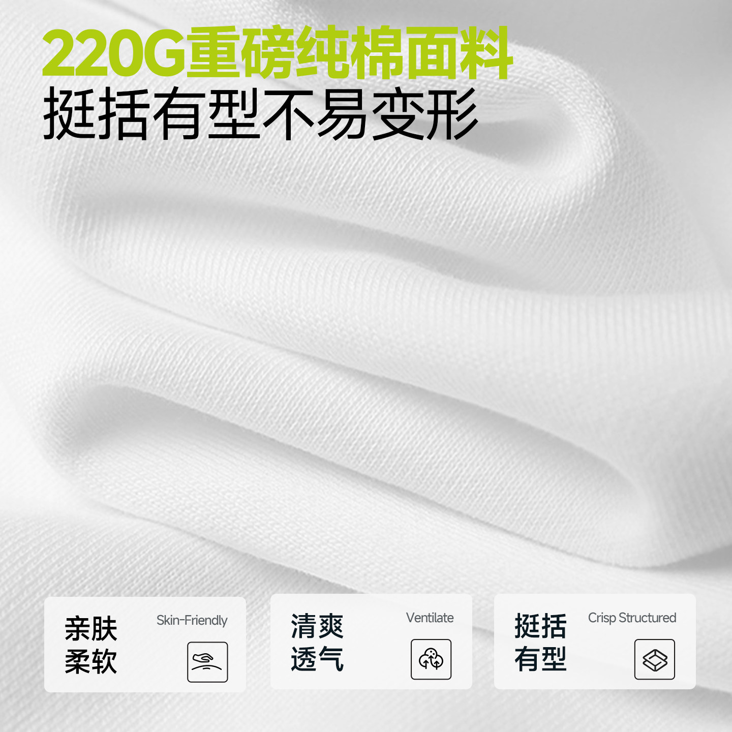 回力高克重t恤男重磅纯棉米白色2026新款夏季长袖青少年正肩短袖Y