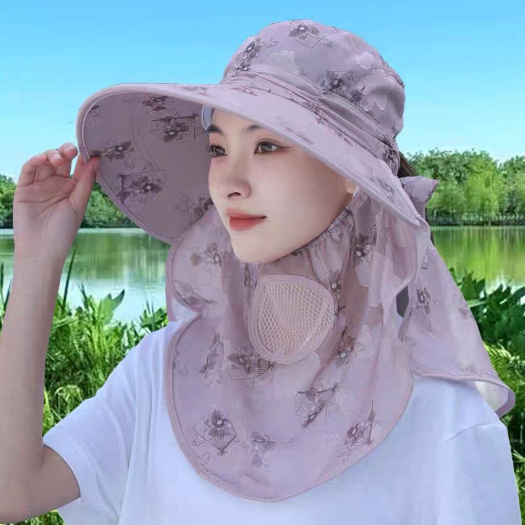 夏季女士防晒遮阳帽宽檐护颈面罩一体遮脸防尘紫外线采茶太阳帽子