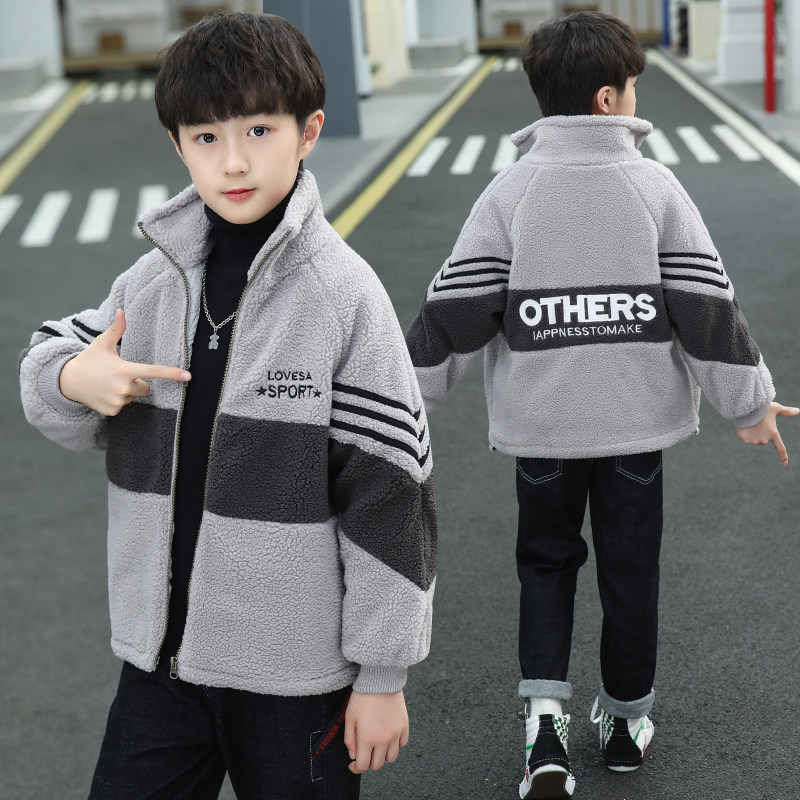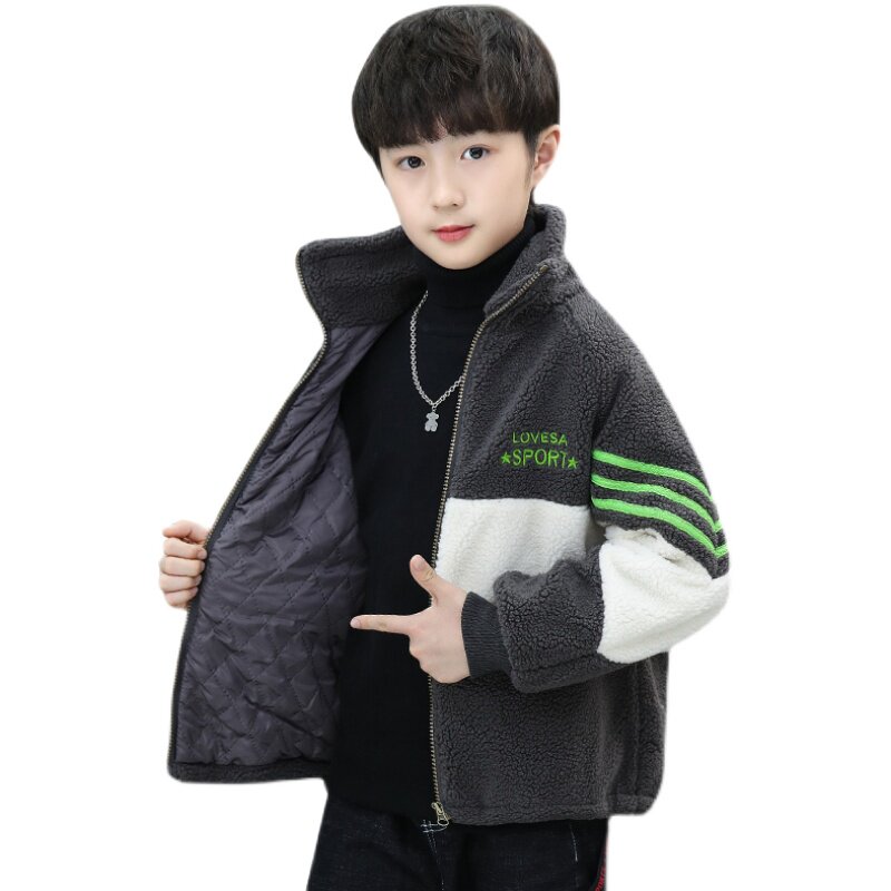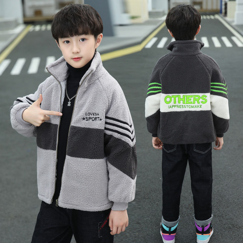 男童加棉外套秋冬款2026新款男孩韩版洋气冬装儿童夹棉摇粒绒棉衣