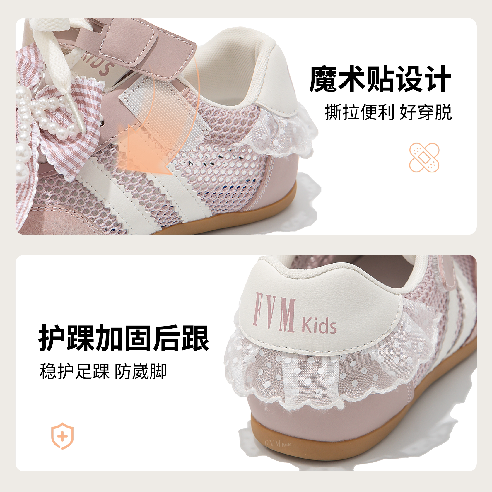 FVM女童鞋子儿童运动板鞋2026新款春季春款网面透气大童休闲德训