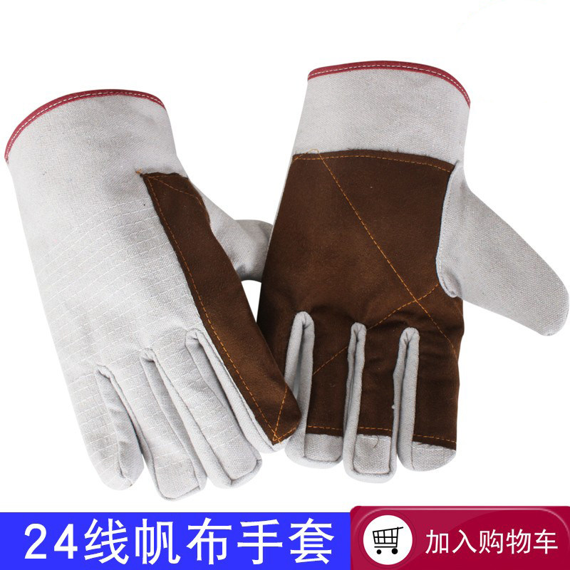 双层全衬24道线帆布手套机械电焊工耐磨加厚工作劳保防护用品厂家