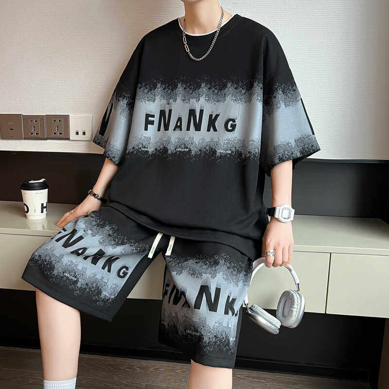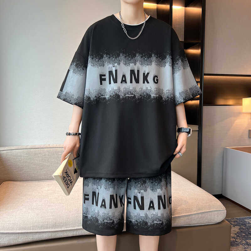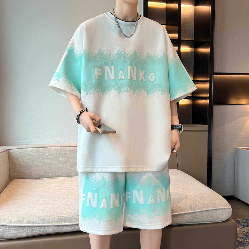 青少年短袖t恤男孩时尚休闲初高中学生潮流帅气半袖大童夏季套装