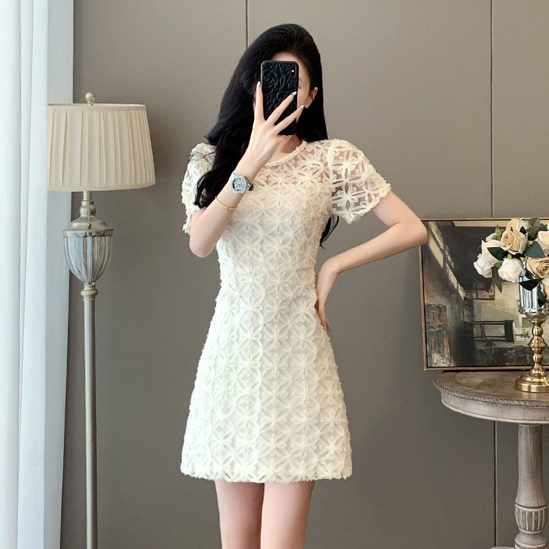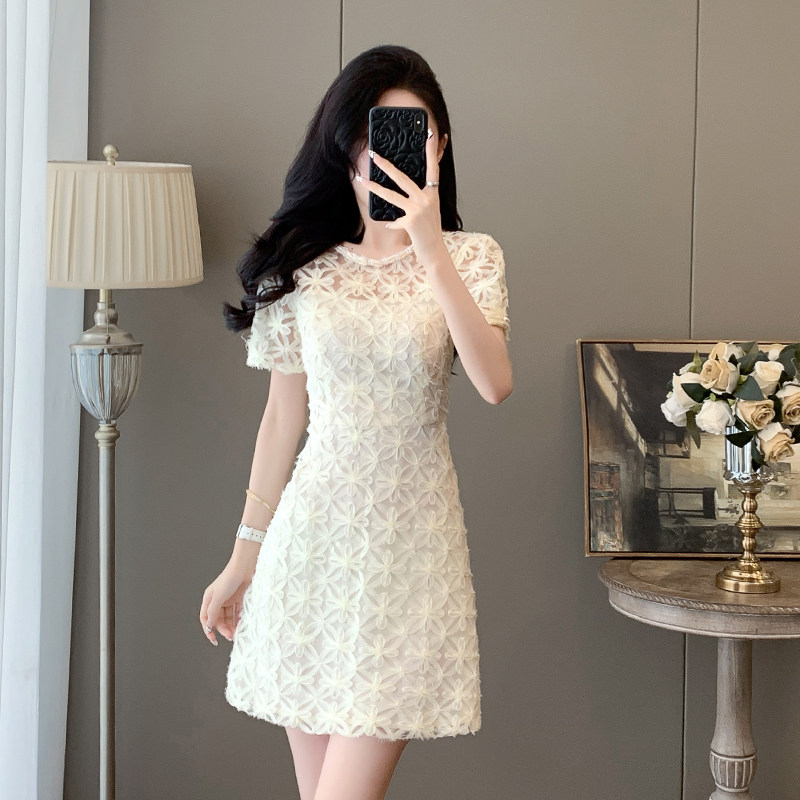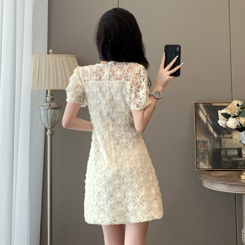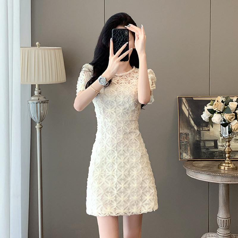 法式小香风高级感蕾丝连衣裙女装夏季新款收腰显瘦小个子短款裙子