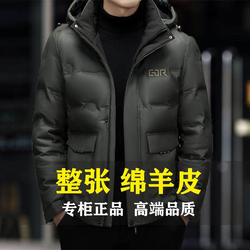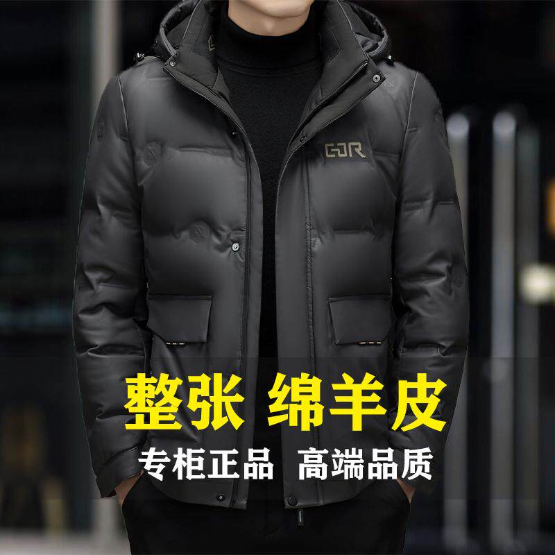 高档海宁真皮羽绒服男绵羊皮夹克新款冬季连帽加厚大码皮衣外套潮