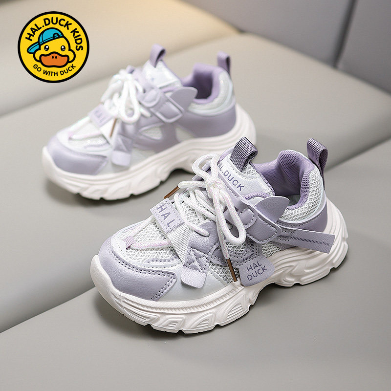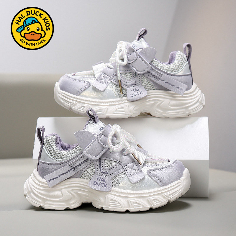 小黄鸭女童老爹鞋春秋款2026新款网面透气儿童运动鞋女孩轻便鞋子