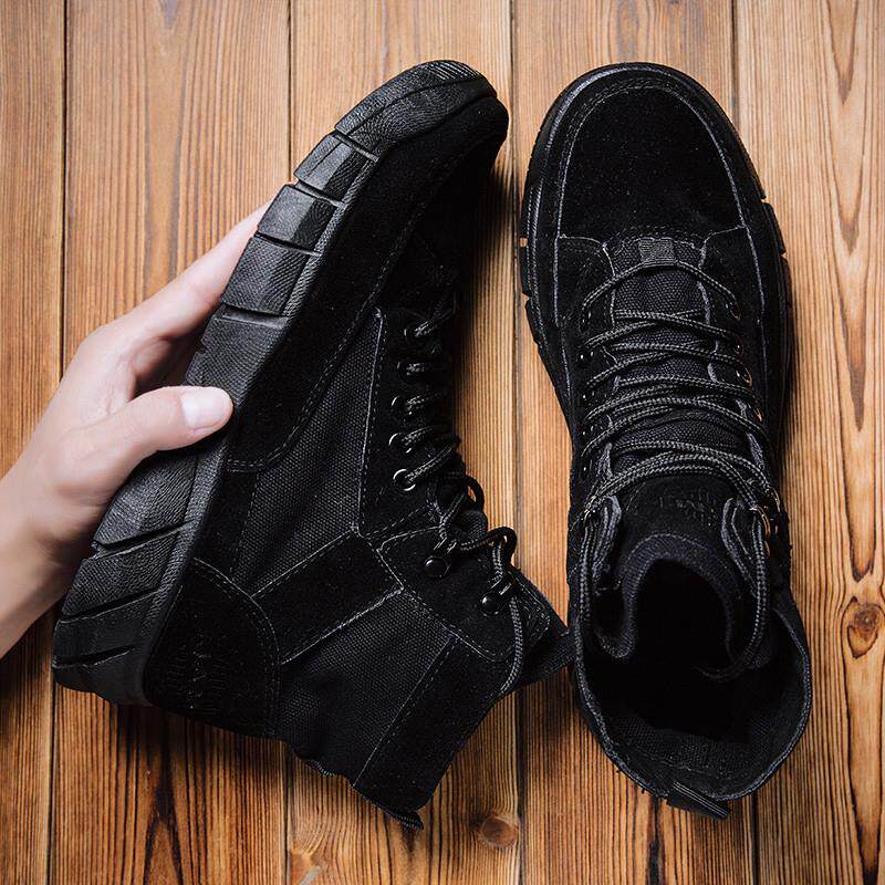 鞋子男款夏季透气男款男鞋高帮帆布劳保鞋男士工作工地马丁靴潮鞋