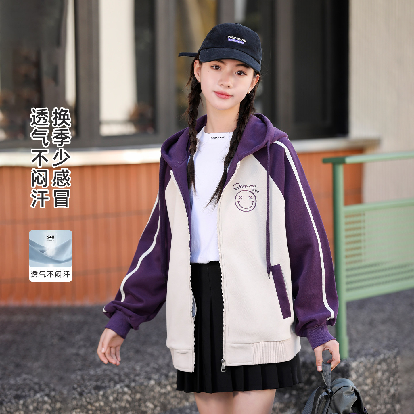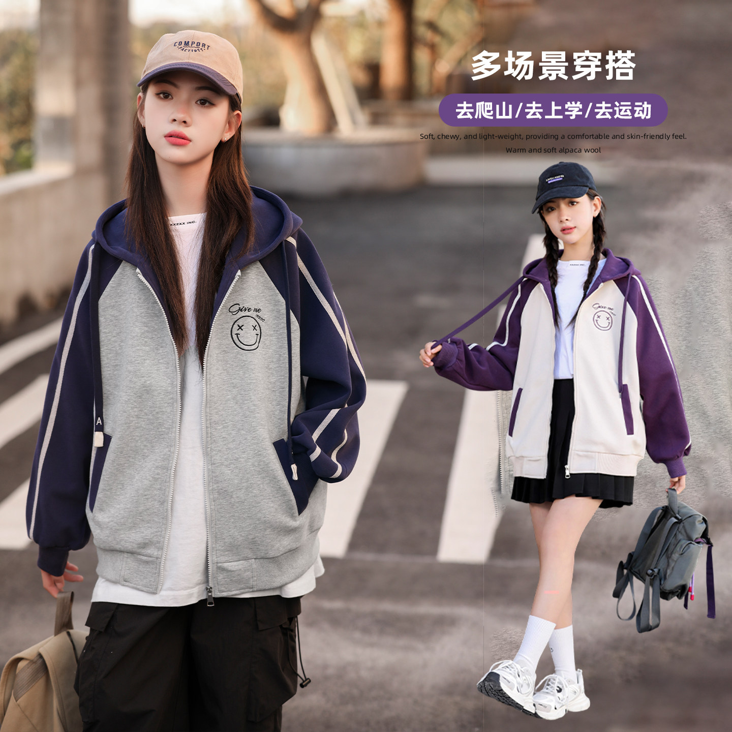 青少年女孩外套卫衣2026春秋新款连帽开衫衣服女大童初高中生上衣