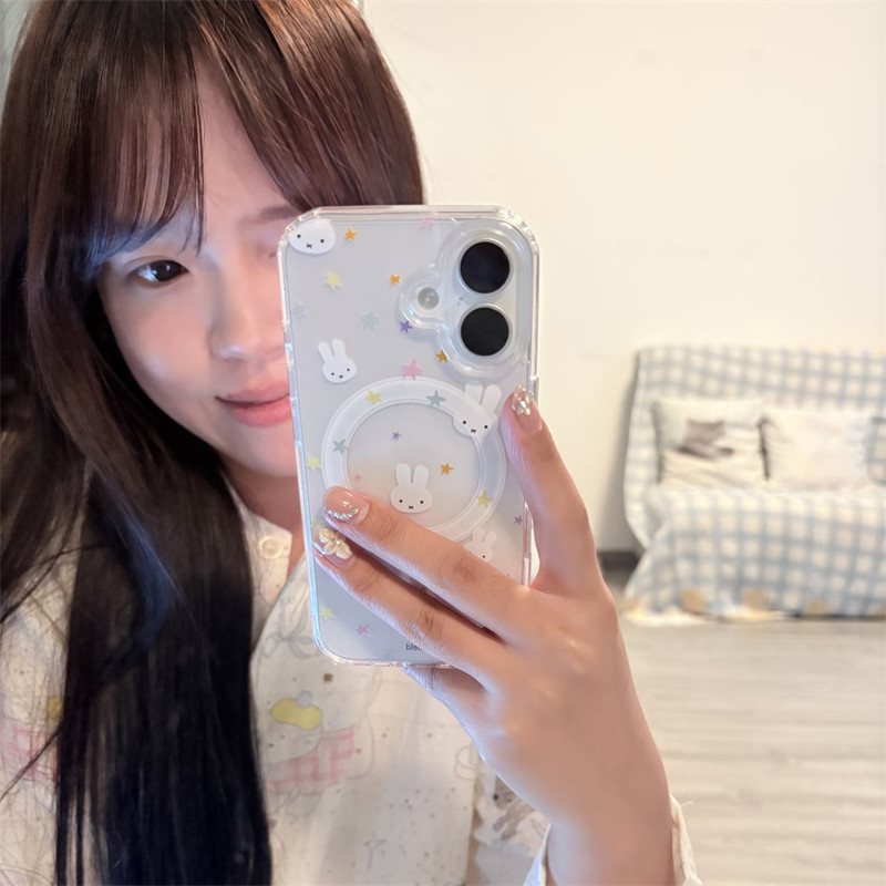 韩系ins卡通可爱星星米菲兔磁吸手机壳适用苹果17promax新款iPhone15pro透明亚克力13高级感12女款16全包硬壳