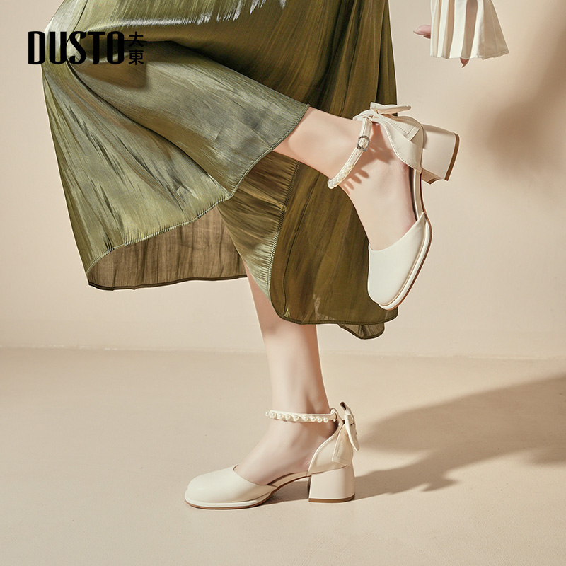 大东包头凉鞋2026夏季新款蝴蝶结配裙子单鞋粗跟高跟增高女鞋