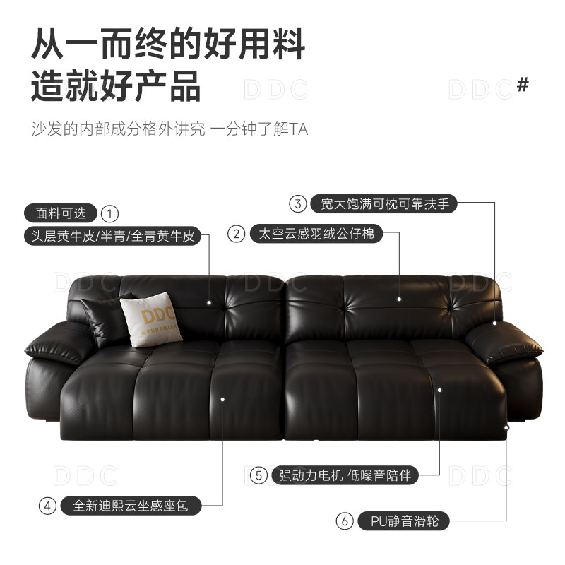 DDC意式头层牛皮智能电动功能沙发床一体两用创意真皮抱抱熊沙发